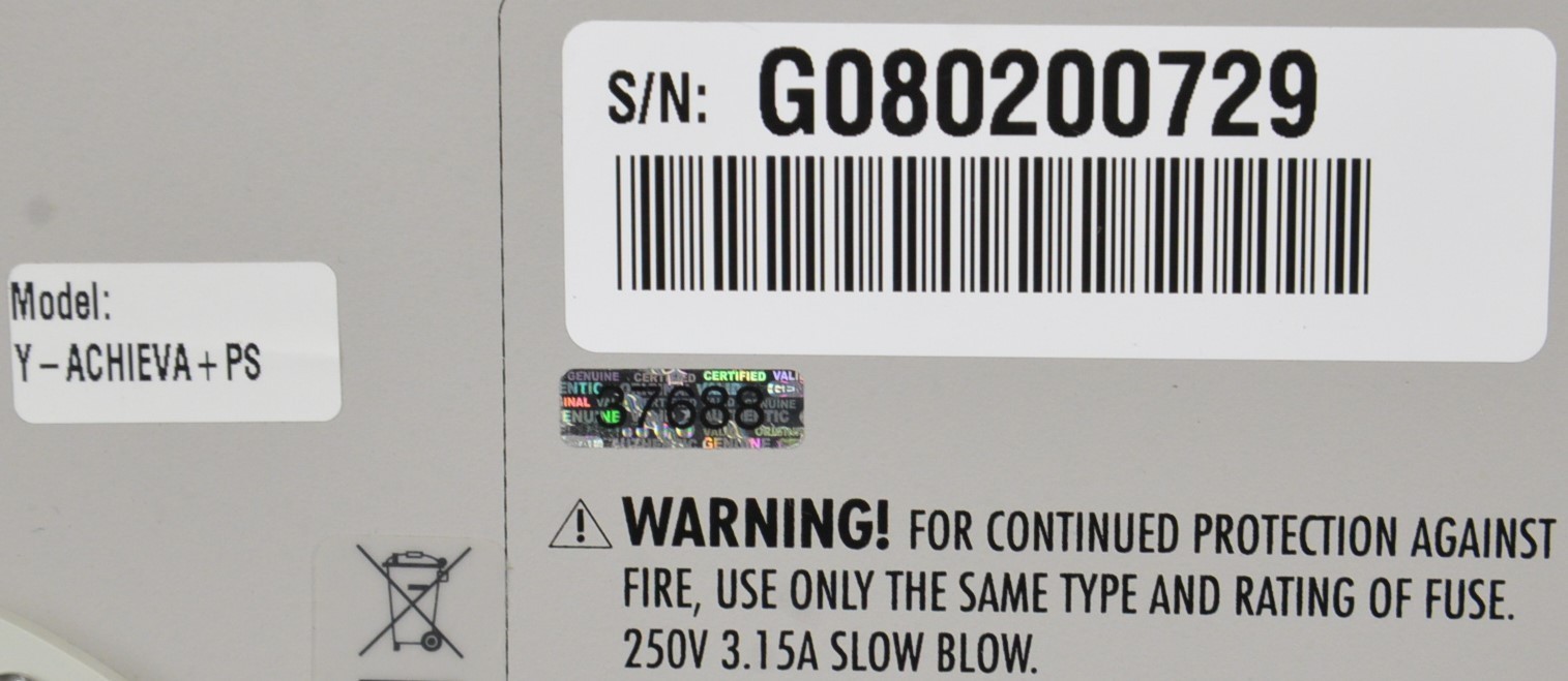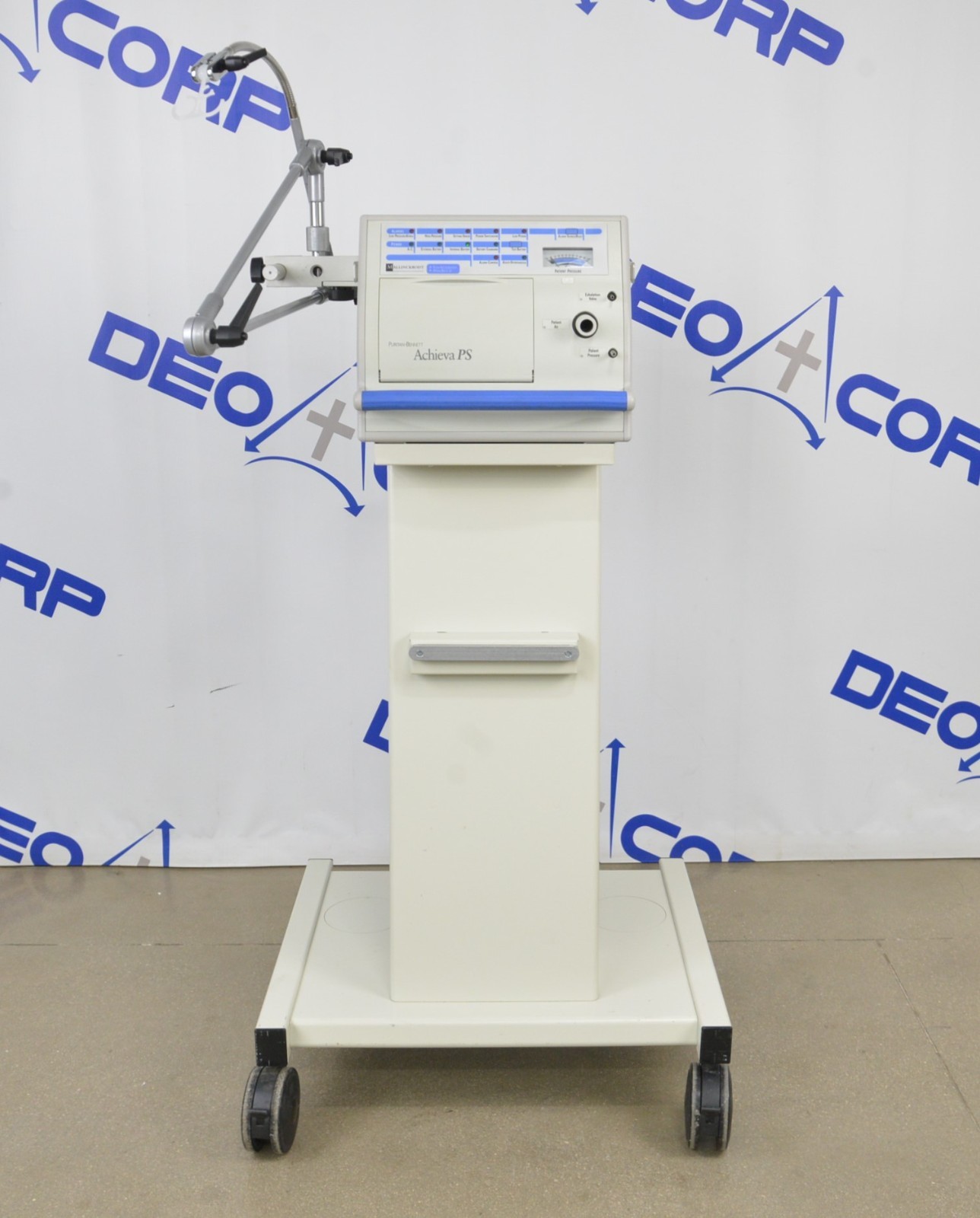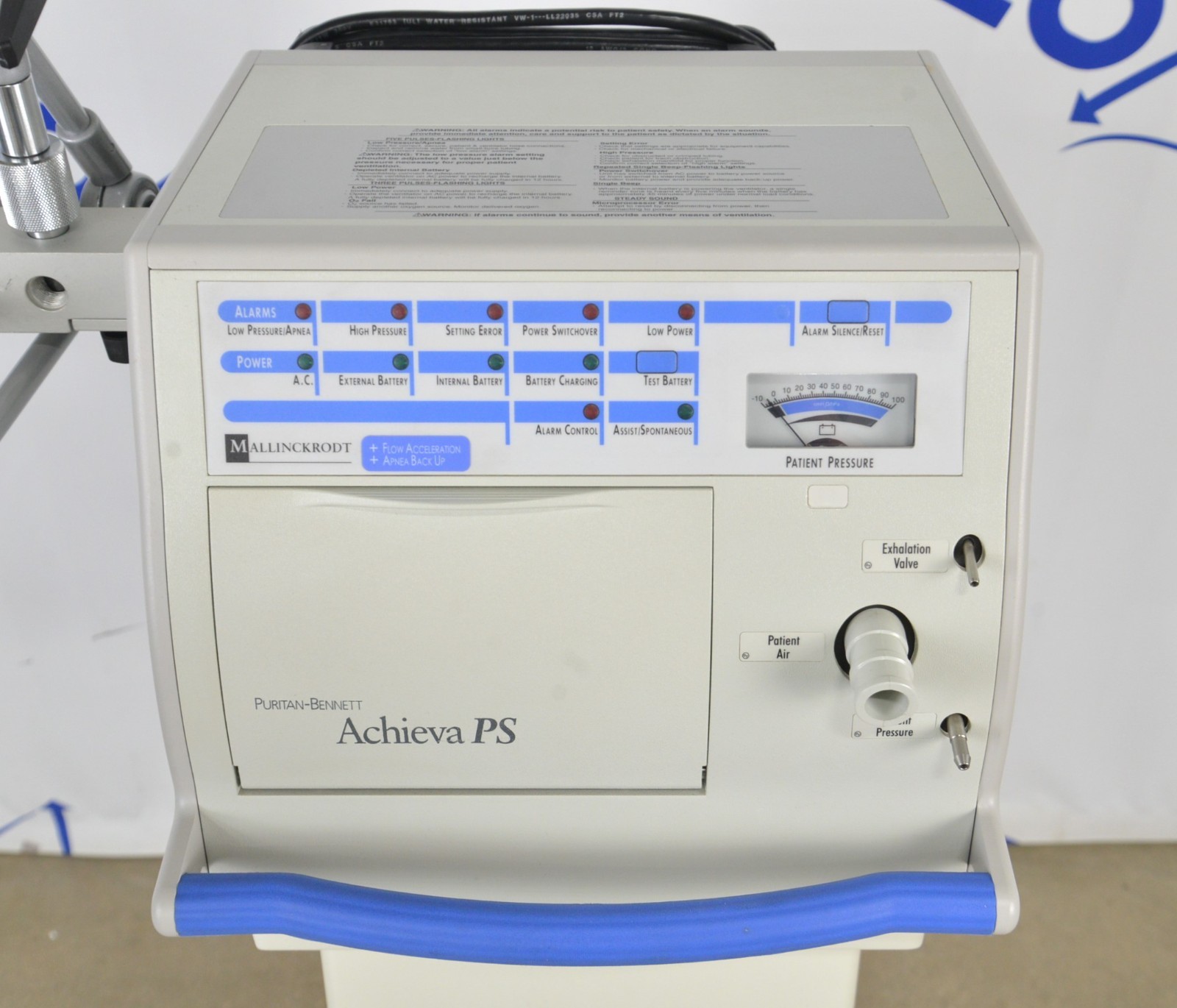 This Puritan Bennett Achieva PS Machine came from a working environment and is in great cosmetic condition. The unit powers on properly. The display screen has a clear image and responds properly to selection. All connection points are clean and in good condition. There are a few minor scuff marks from previous use (see photos). This unit comes with a 30 day satisfaction guarantee. Includes everything in the pictures and nothing else.
