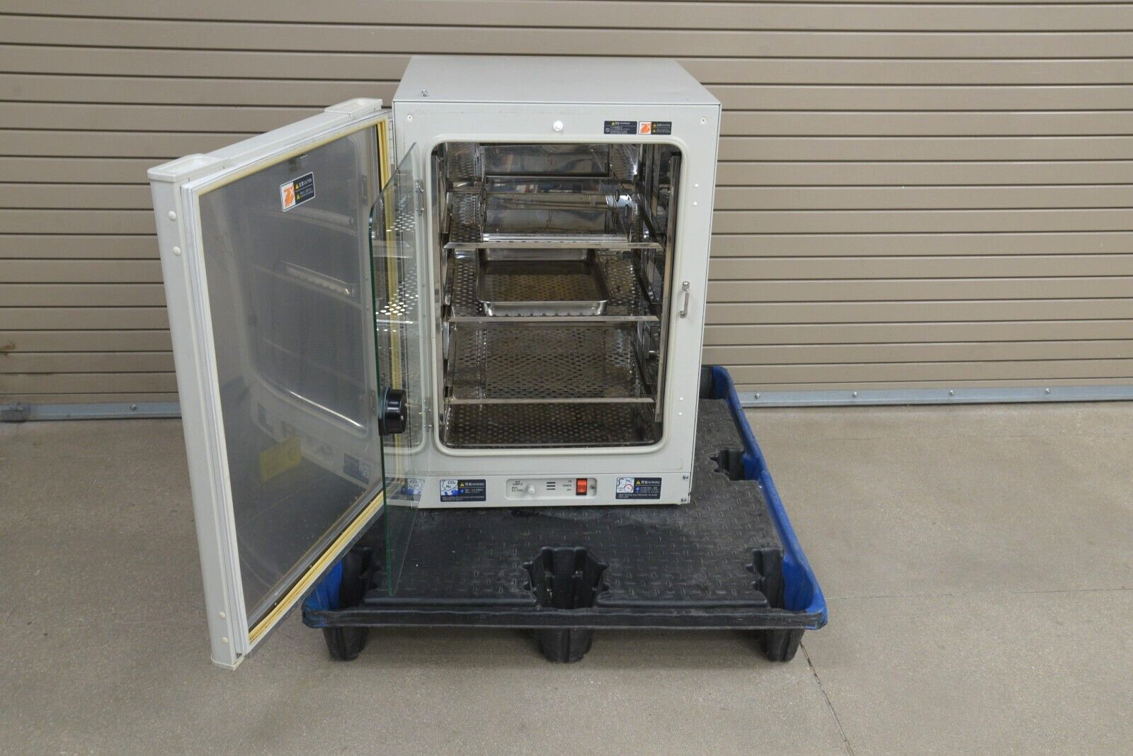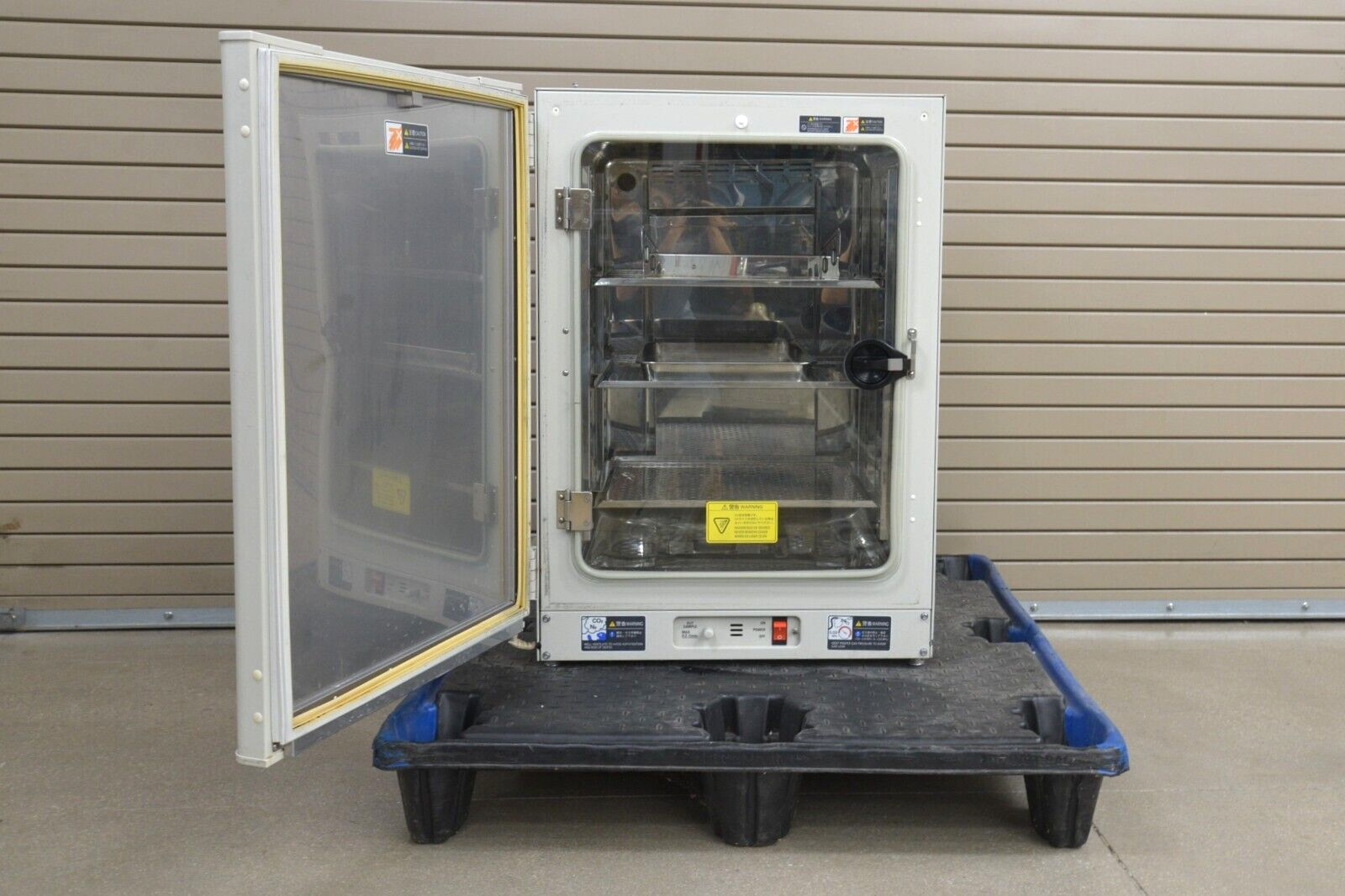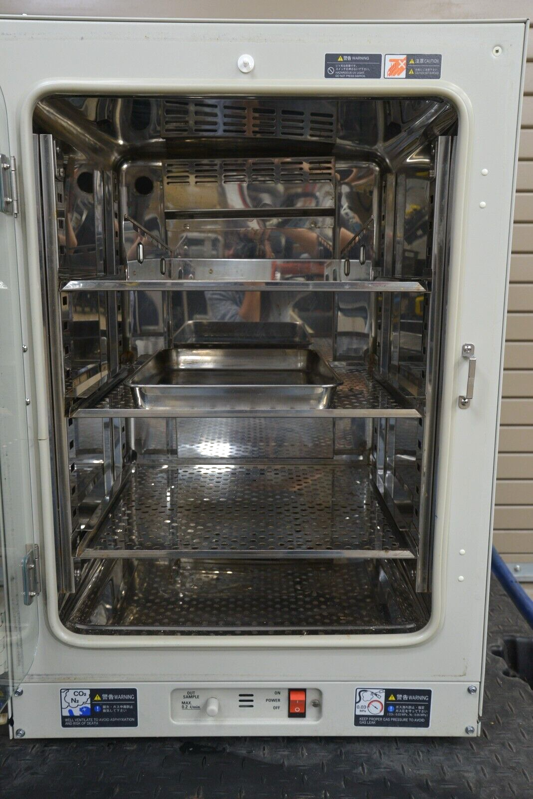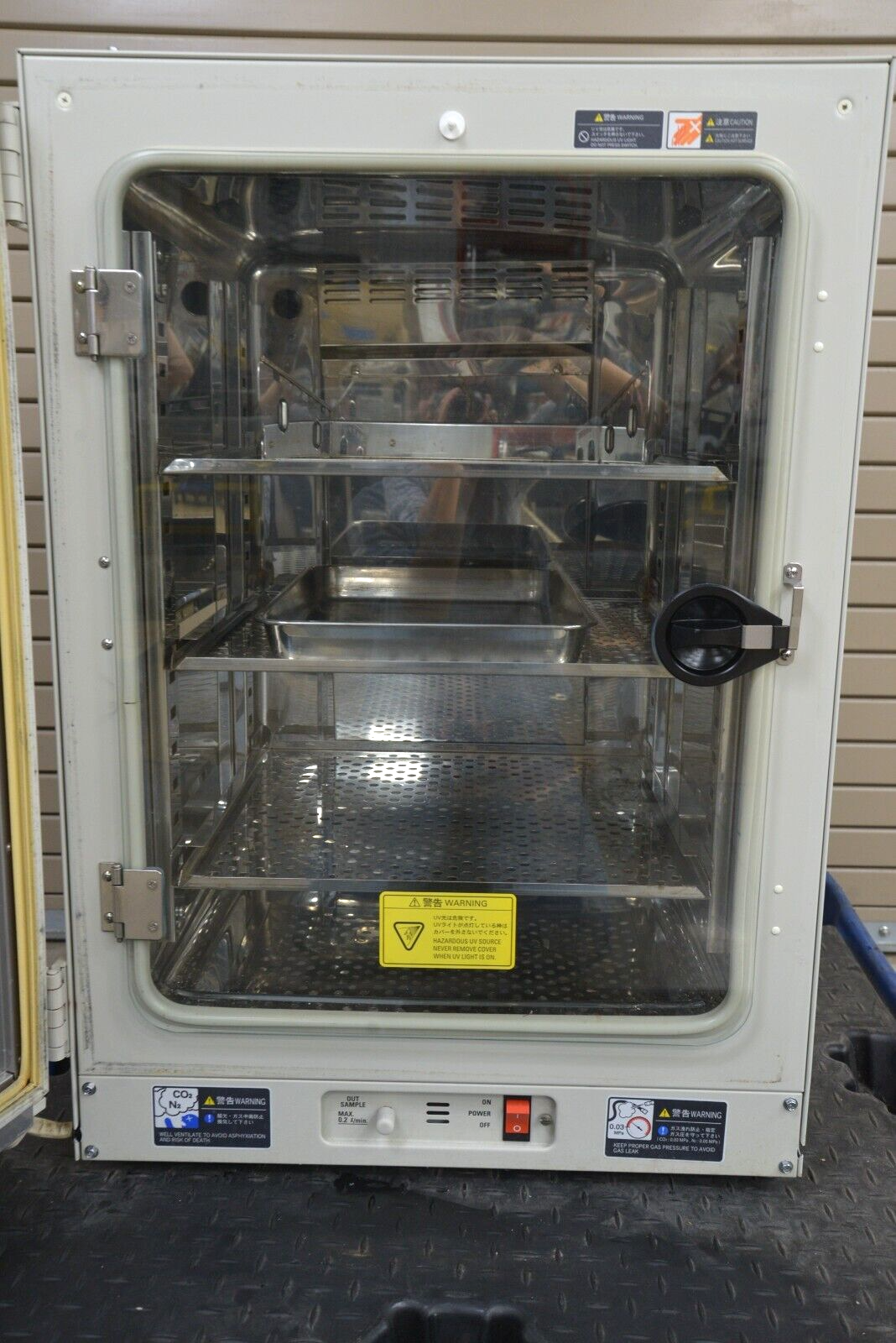 This Sanyo MCO-18AIC(UV) Laboratory CO2 Incubator came from a working environment and is in working condition. The unit powers on properly. The buttons respond appropriately when pushed. All connection points are clean and in good condition. There are minor scratches and scuff marks and slight rusting of the metal shelves inside the unit common with previous use (see photos). We are not experts in the subject matter; therefore, we are unable to fully test this unit. This unit comes with a 30 day money back guarantee. Includes everything in the pictures and nothing else.