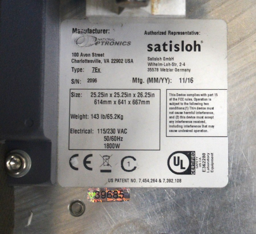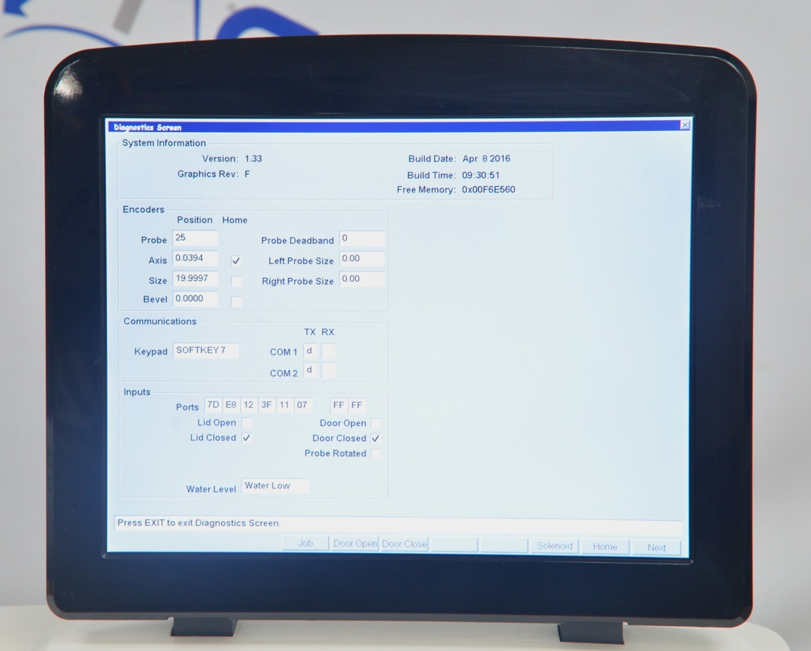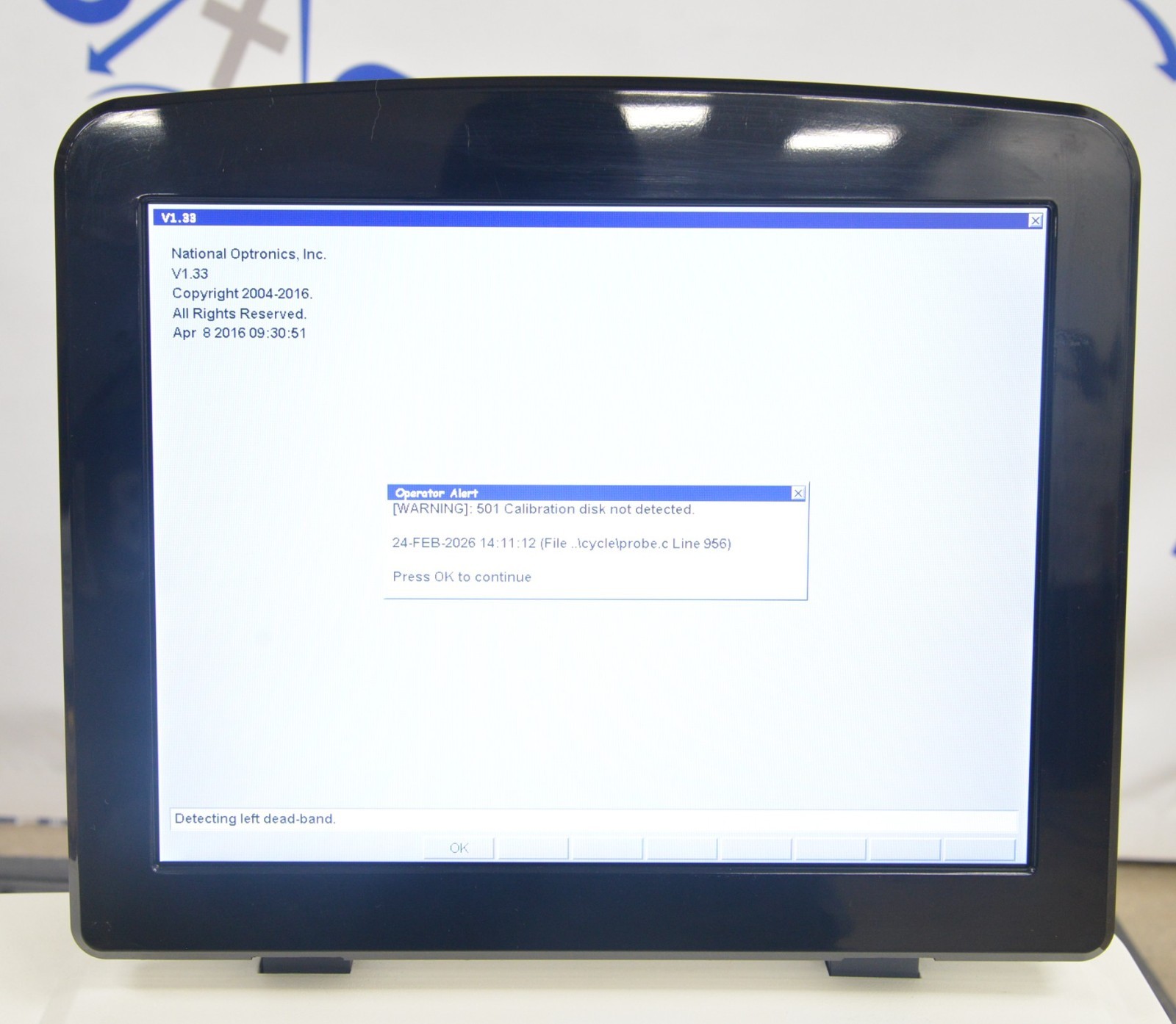This Satisloh National Optronics 7Ex Patternless Lens Edging System powers on and is in good working condition. The unit powers on. The display screen produces a clear image and responds properly to selection. Connections are clean and in good condition. This unit does not have the calibration disc and will need calibration for proper function. There are some scuff marks from previous use (see photos). This unit comes with a 30 day satisfaction guarantee. Includes everything in the pictures and nothing else.