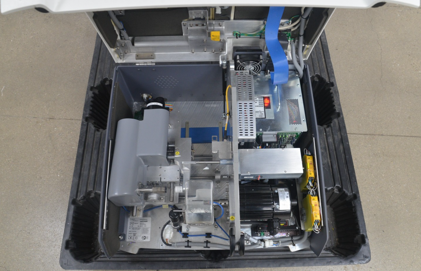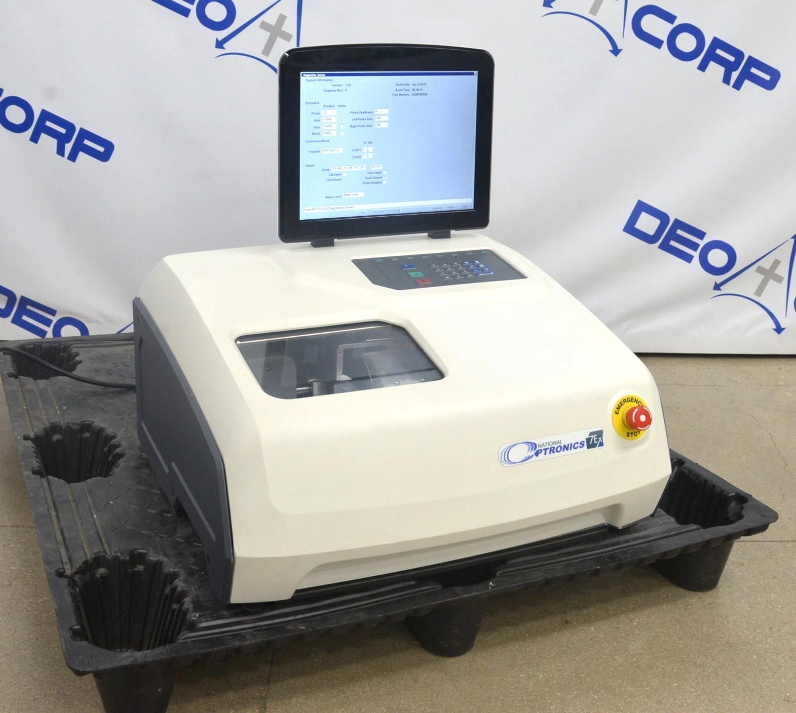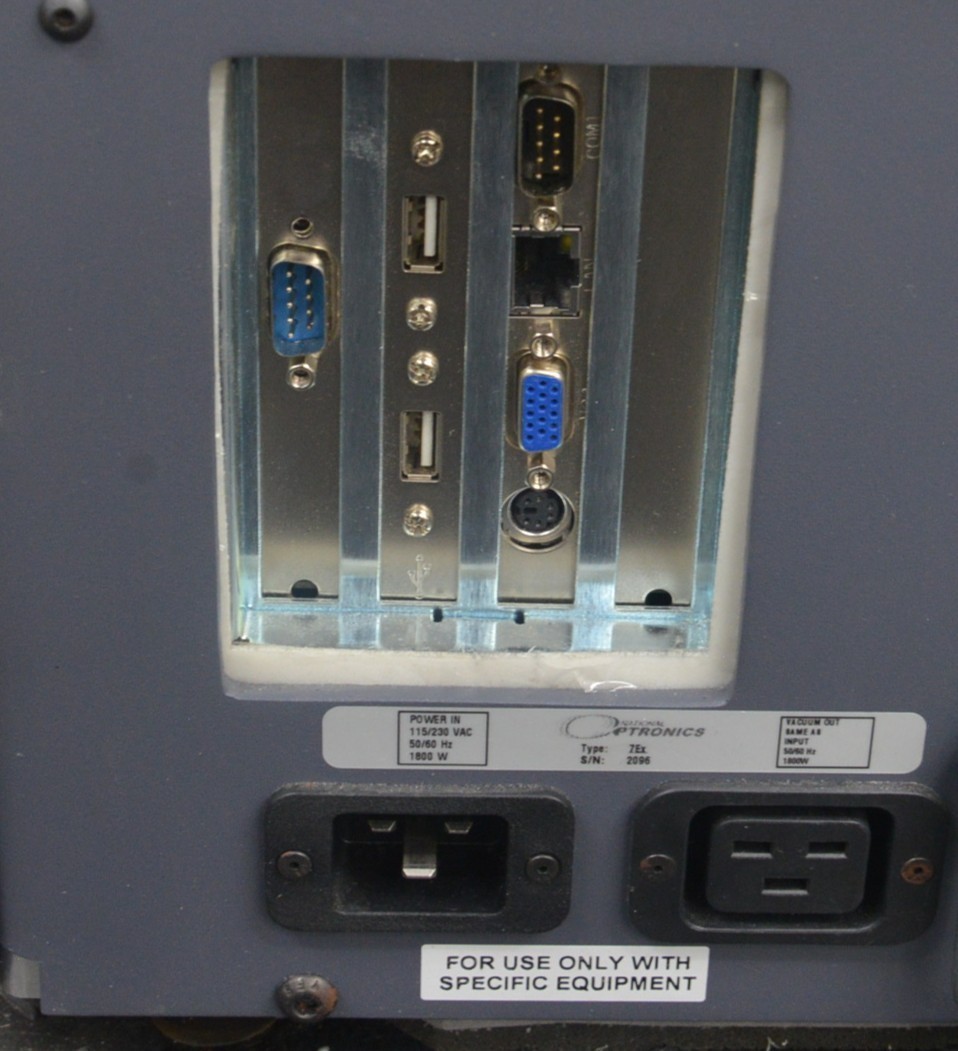 This Satisloh National Optronics 7Ex Patternless Lens Edging System powers on and is in good working condition. The unit powers on. The display screen produces a clear image and responds properly to selection. Connections are clean and in good condition. This unit does not have the calibration disc and will need calibration for proper function. There are some scuff marks from previous use (see photos). This unit comes with a 30 day satisfaction guarantee. Includes everything in the pictures and nothing else.
