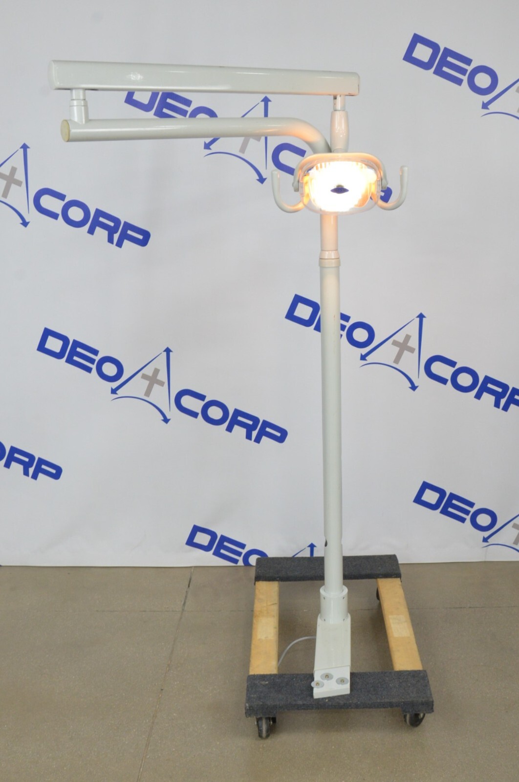This SDS Summit Dental System Dental Chair Post Mount Light is in great working condition. The light powers on and was tested using a exterior power source that is not included. The connections are clean and in good condition. There are a few minor scuff marks from previous use (see photos). This unit comes with a 30 day satisfaction guarantee. Includes everything (except dolly) in the pictures and nothing else.