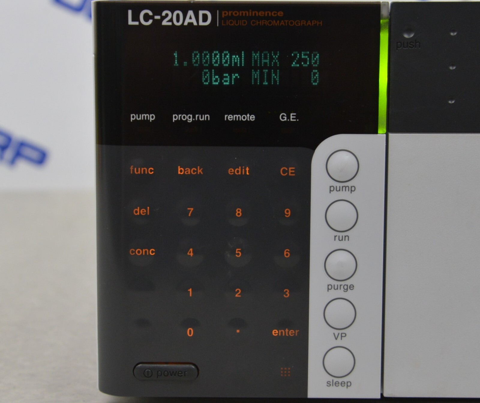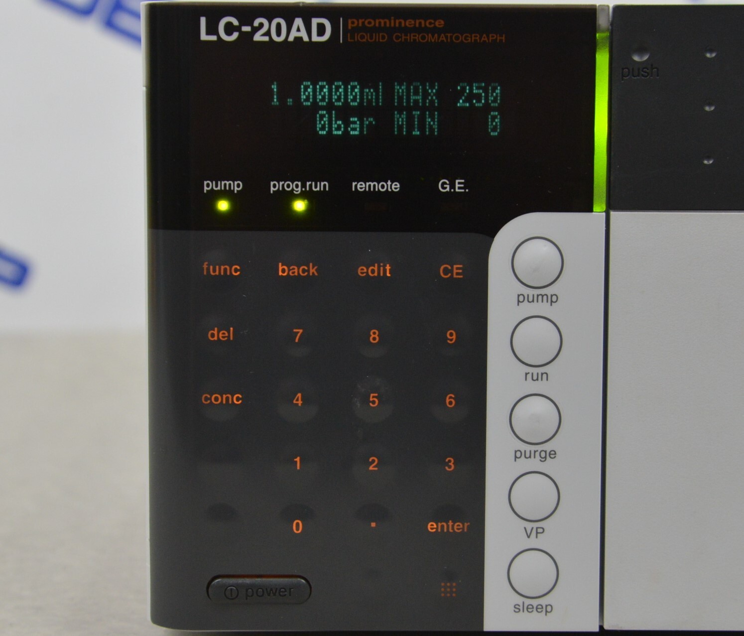 This Shimadzu Prominence LC-20AD Liquid Chromatograph is in good cosmetic condition. The unit powers on; however, the pump does not work, for this reason its being sold for parts. The buttons on this unit respond to selections. All connection points are clean and in good condition. There are scuff marks and stains from previous use (see photos). Includes everything in the pictures and nothing else.