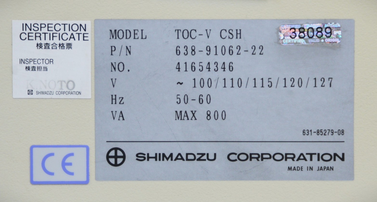 Shimadzu TOC-V CSH Total Organic Carbon Analyzer w/ Shimadzu ASI-V Autosampler