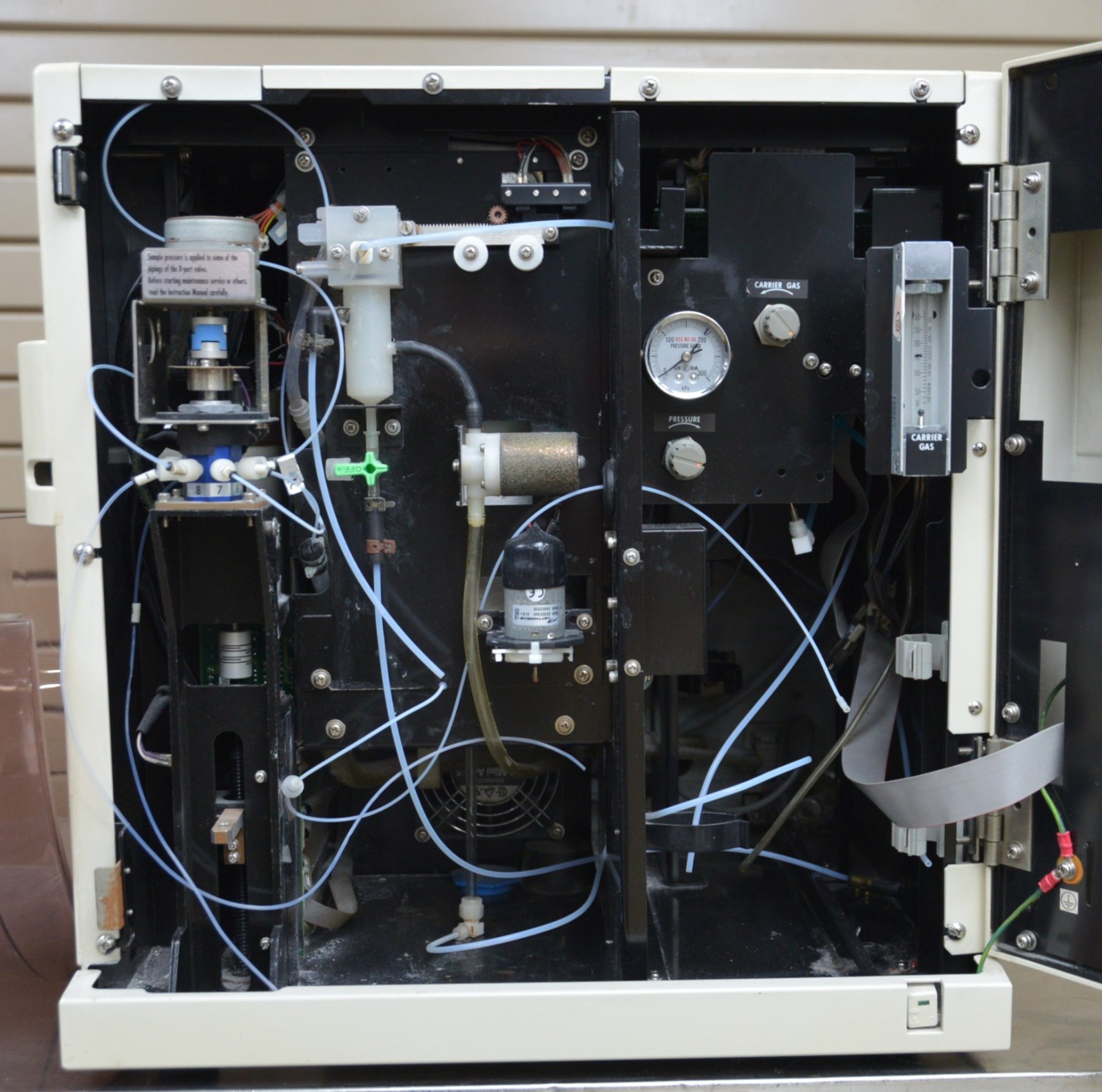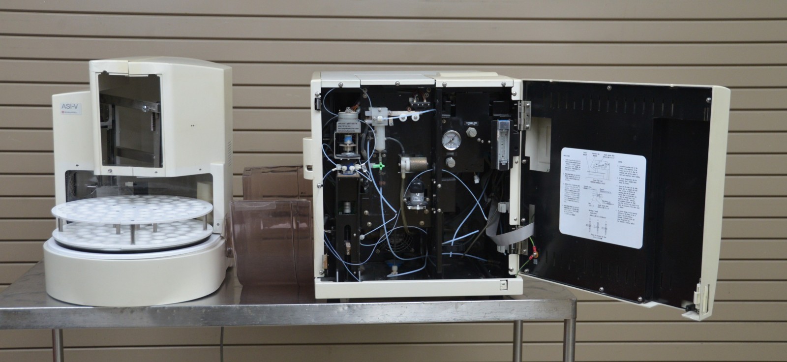 This Shimadzu TOC-V CSH Total Organic Carbon Analyzer w/ Shimadzu ASI-V Autosampler is in fair condition. The unit has on as seen by the power button lighting up; however, the display screen does not turn on and button pad dose not respond, for these reasons it is being sold for parts. The connections are clean and in good condition. There are some cracks, discoloration, and scratches from previous use (see photos). Includes everything in the pictures and nothing else.