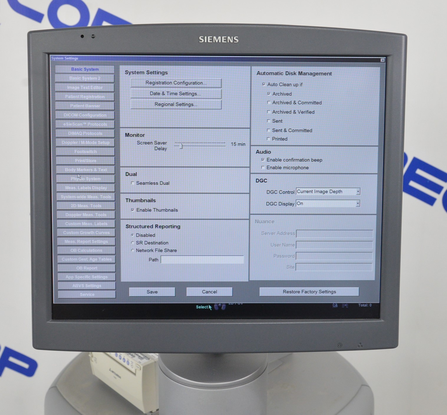 ThisSiemens Acuson S2000 HELX Evolution Imaging Machine W/ Siemens EC9-4 Handpiece is in good working condition. The system powers on properly. The display screen produces a clear image and responds properly to selection. All connection points are clean and in good condition. The EC9-4 has dropout. There are some scuff marks and cracks from previous use (see photos). This unit comes with a 30 day satisfaction guarantee. Includes everything in the pictures and nothing else.
