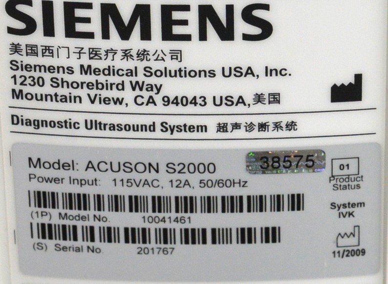 Siemens Acuson S2000 HELX Evolution Imaging Machine W/ Siemens EC9-4 Handpiece