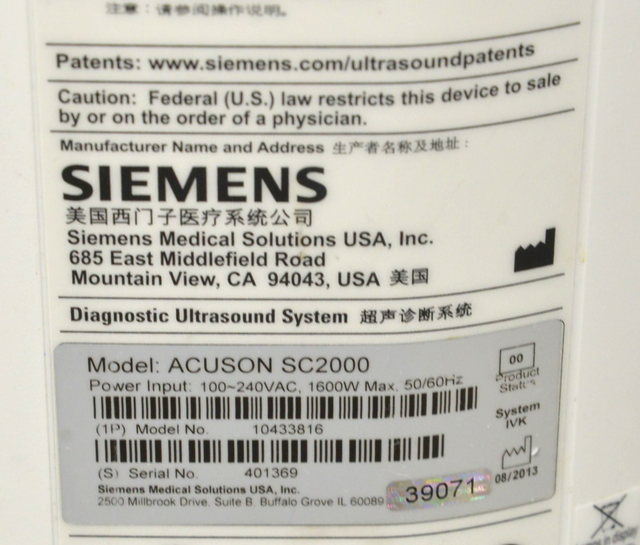 Siemens Acuson SC2000 Diagnostic System w/ 4V1c & Swift Link