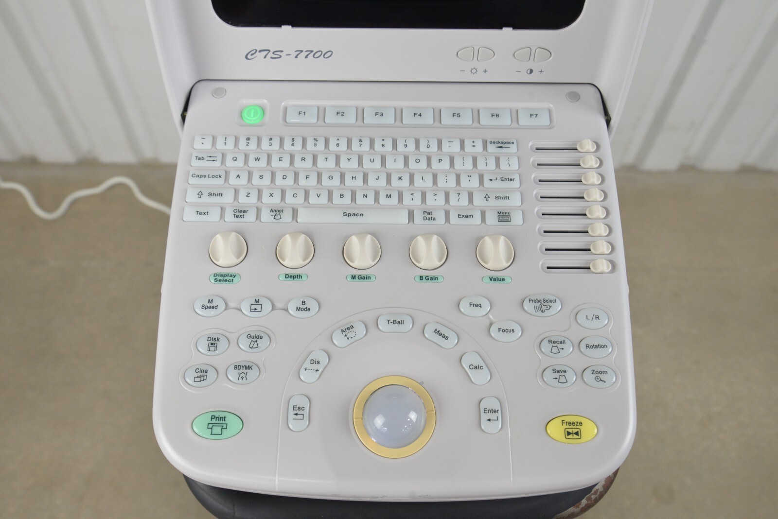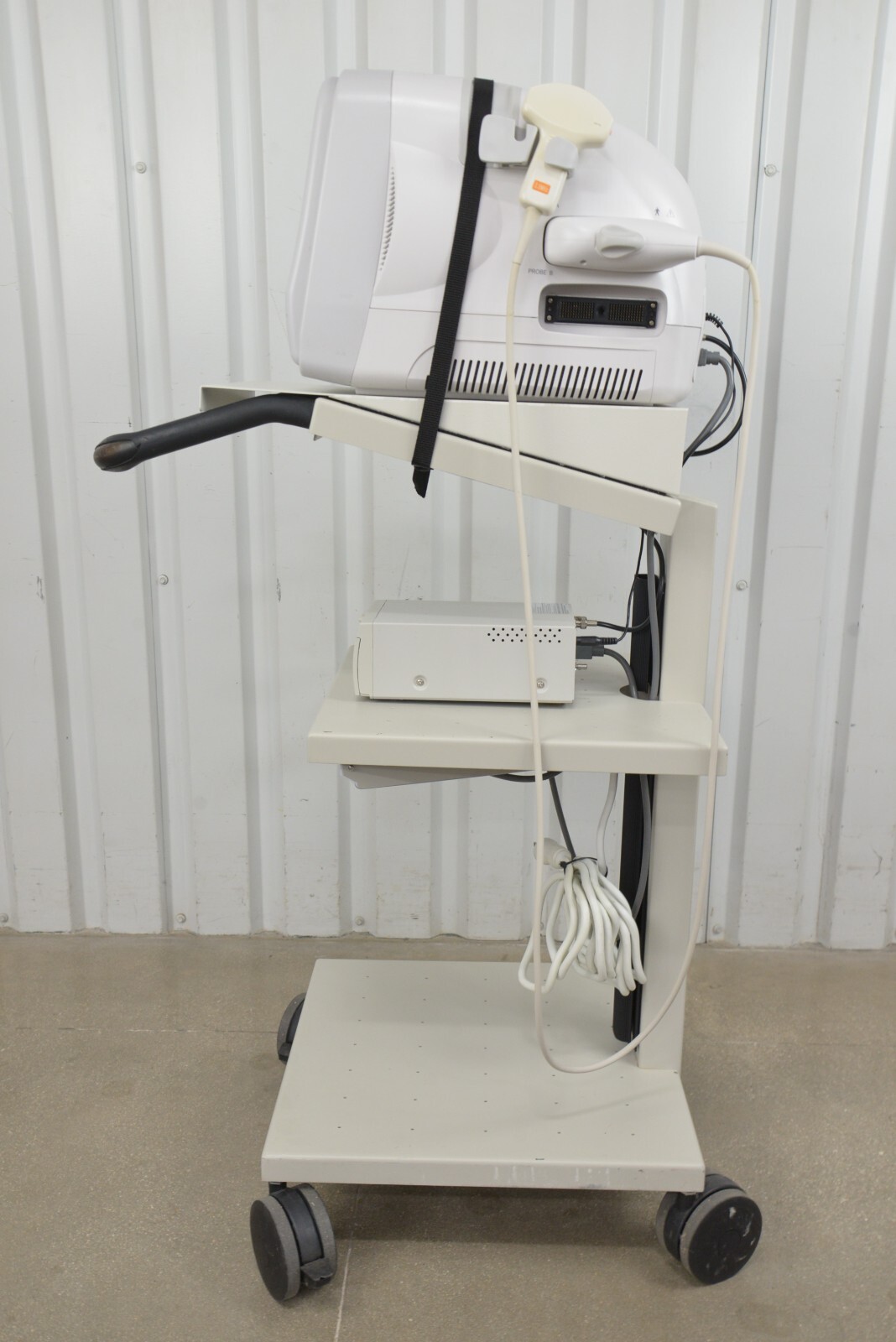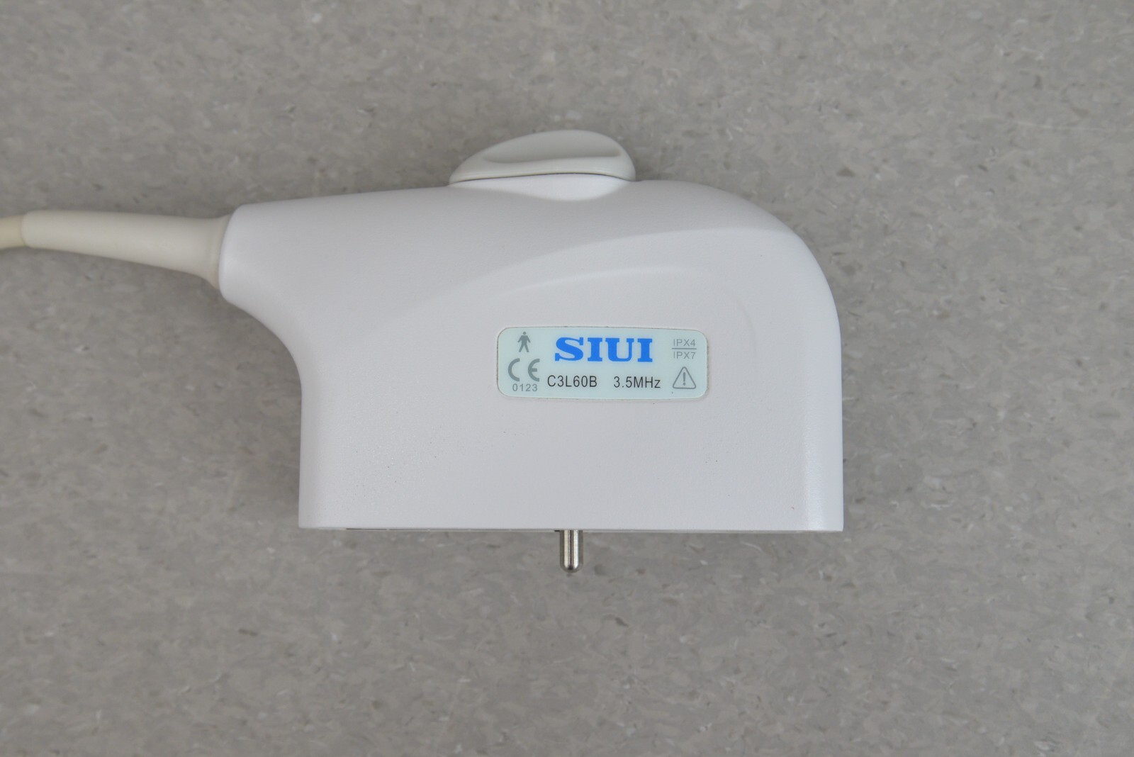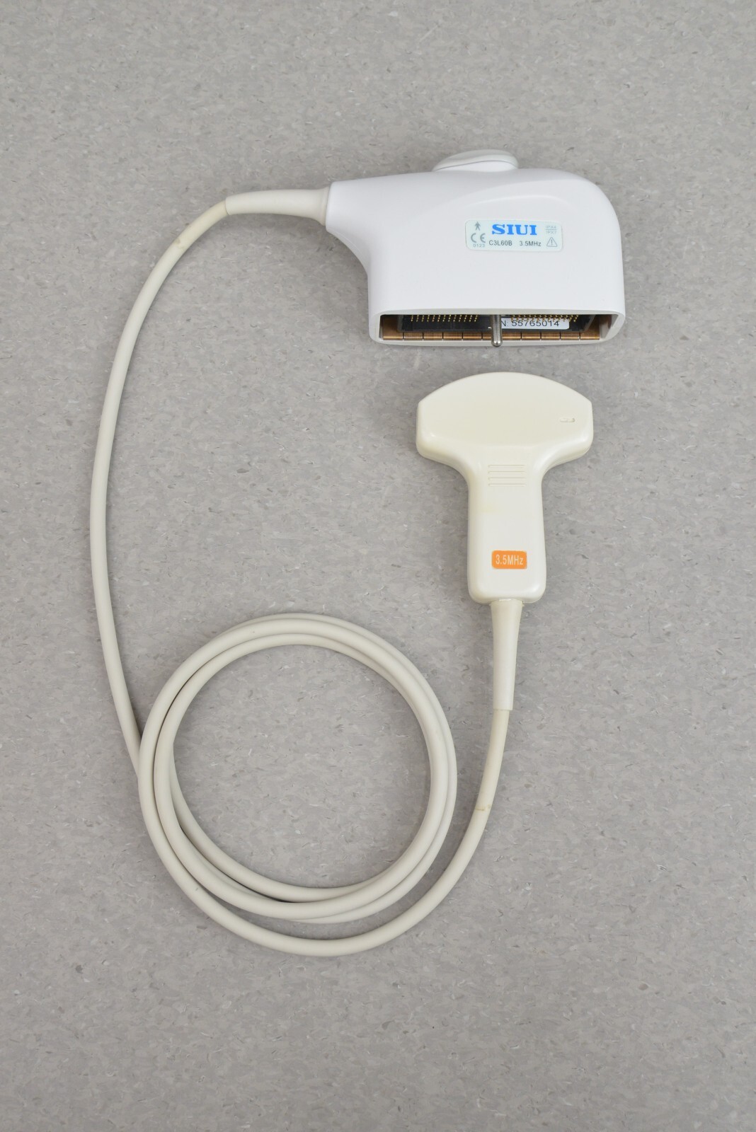 This SIUI CTS-7700 Digital Imaging System W/ SIUI C3L60B 3.5MHz & Printer is in good working condition. This system powers on properly. The display screen has a clear picture and all buttons respond to menu selections. The Siui C3L60B is in good condition. The printer works properly. All connections and connection points are clean and in good condition. The overall cosmetic condition of this system is very good with the exception of a couple minor scuff marks the cover of the handle is coming off a little (see photo). The item comes with a 30 day money back guarantee. Includes everything in the pictures and nothing else.