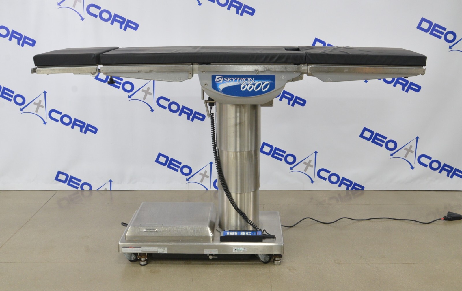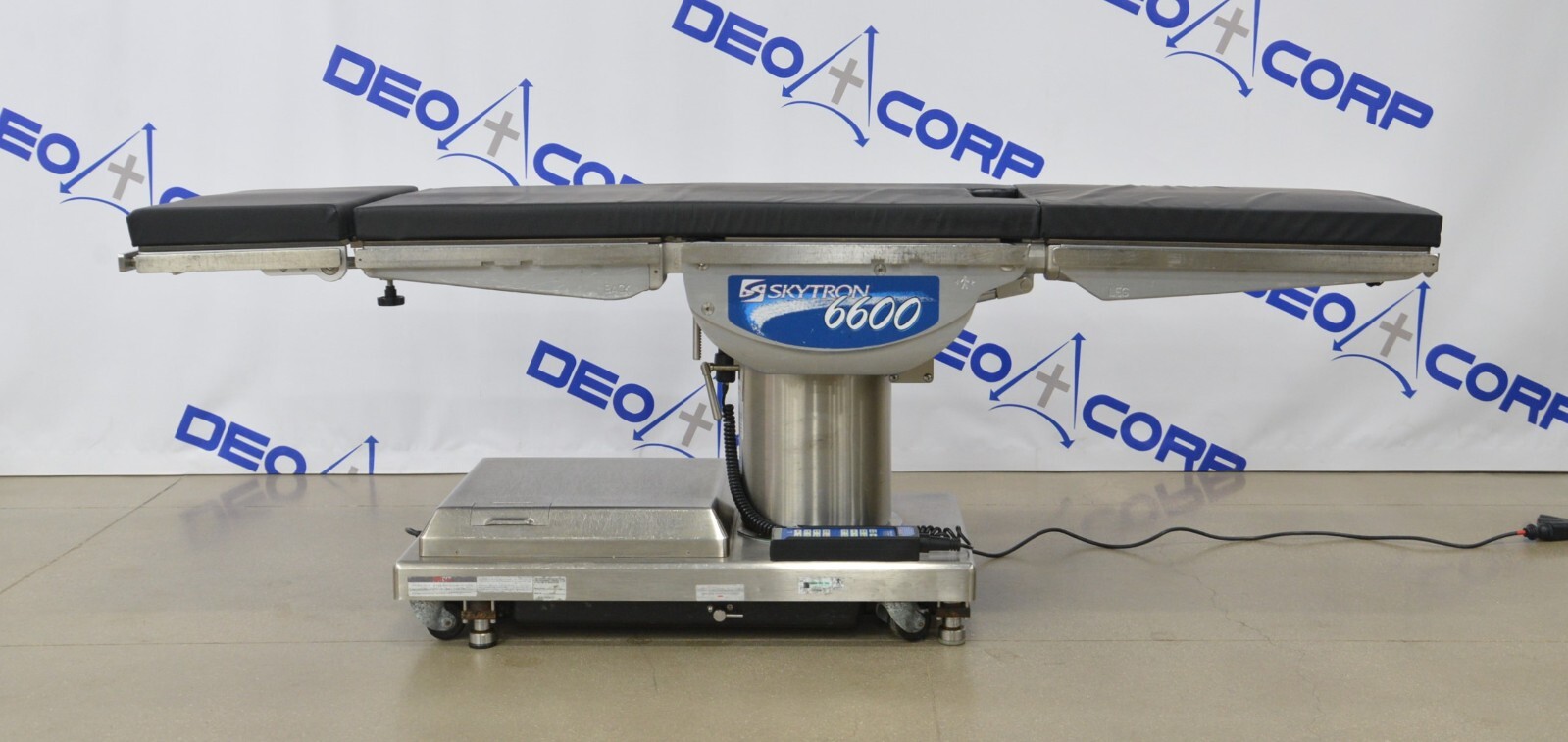 This Skytron Elite 6600 Surgical Table W/ Skytron 6600 Series Remote is in good working condition. The unit powers on and all buttons respond to selections. This unit runs smoothly through all range of motionThere are some scuff marks and small dents in the base from previous use (see photos). This unit comes with a 30 day satisfaction guarantee. Includes everything in the pictures and nothing else.