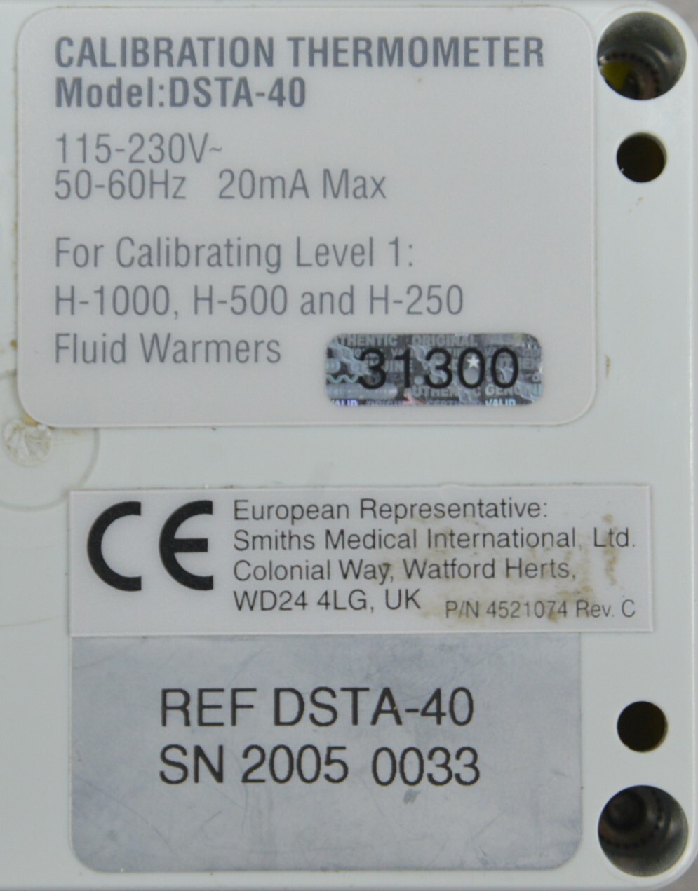 Smiths Medical DSTA-40 Temp Check Thermometer Calibrating Lev.1 Fluid Warmer
