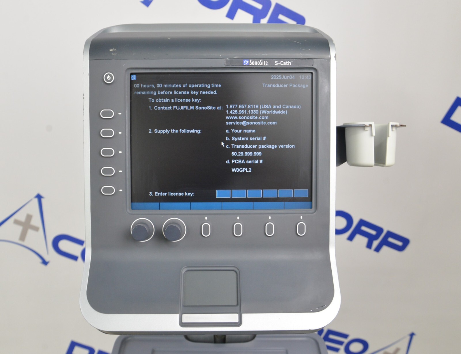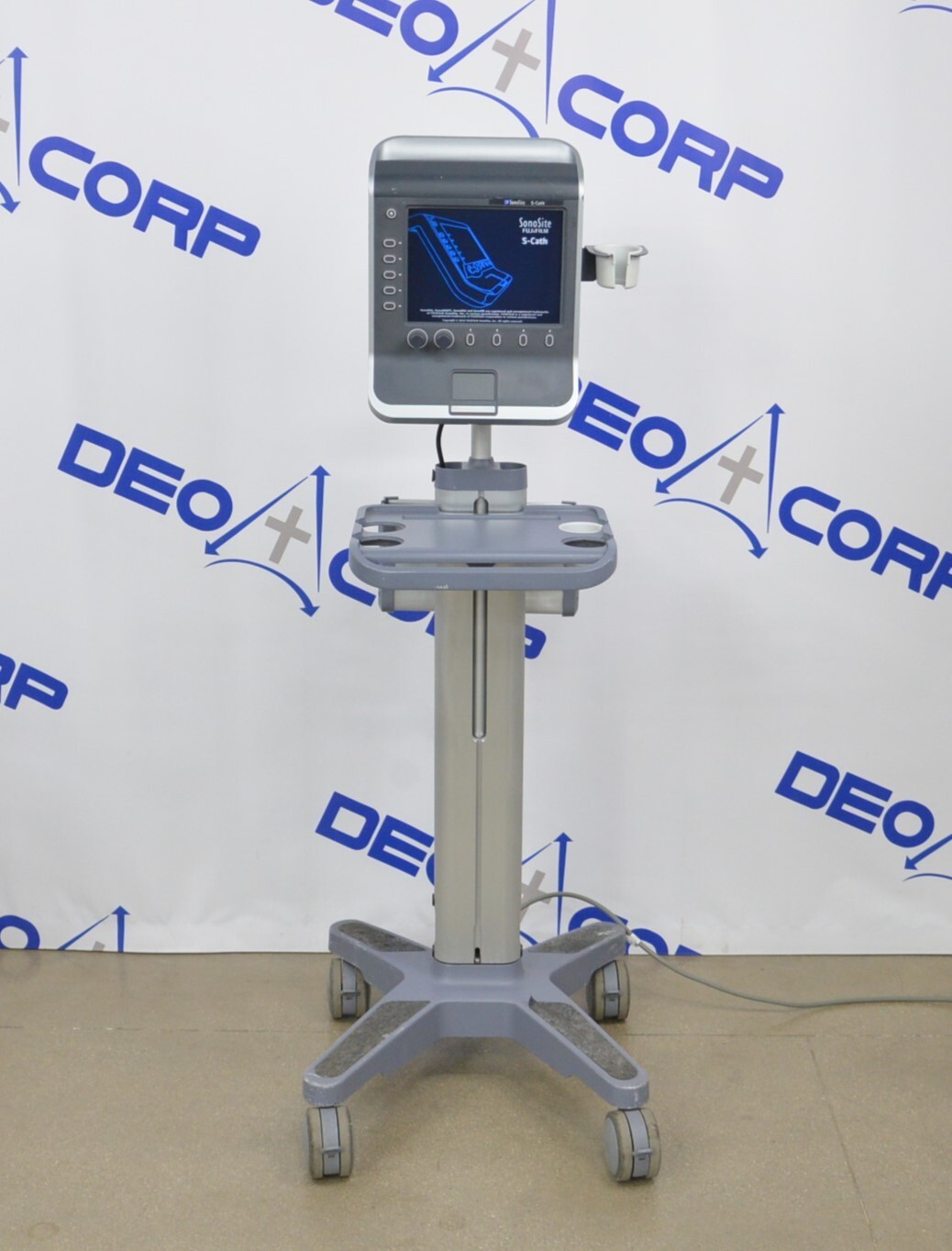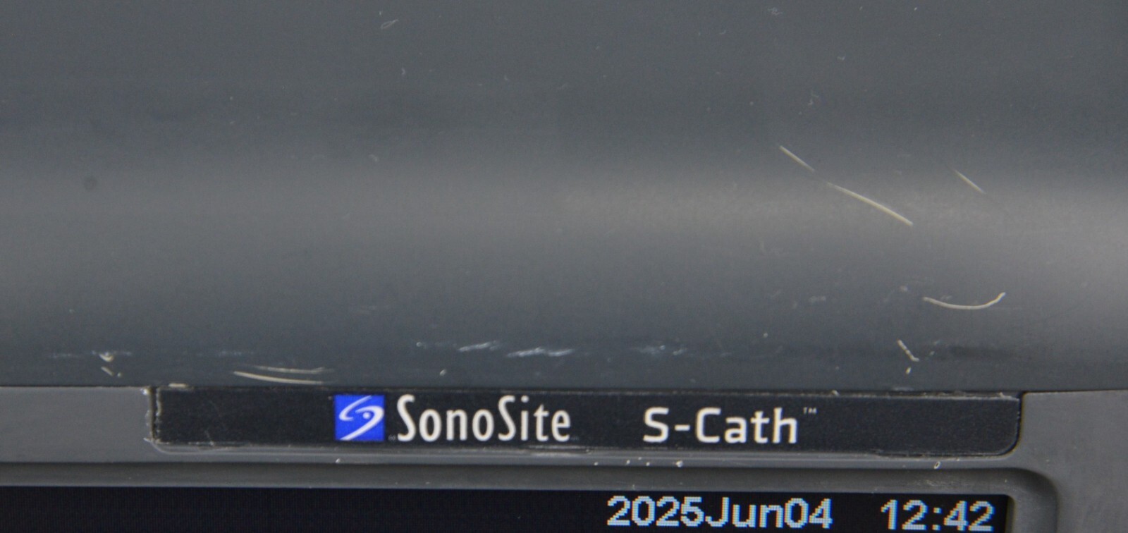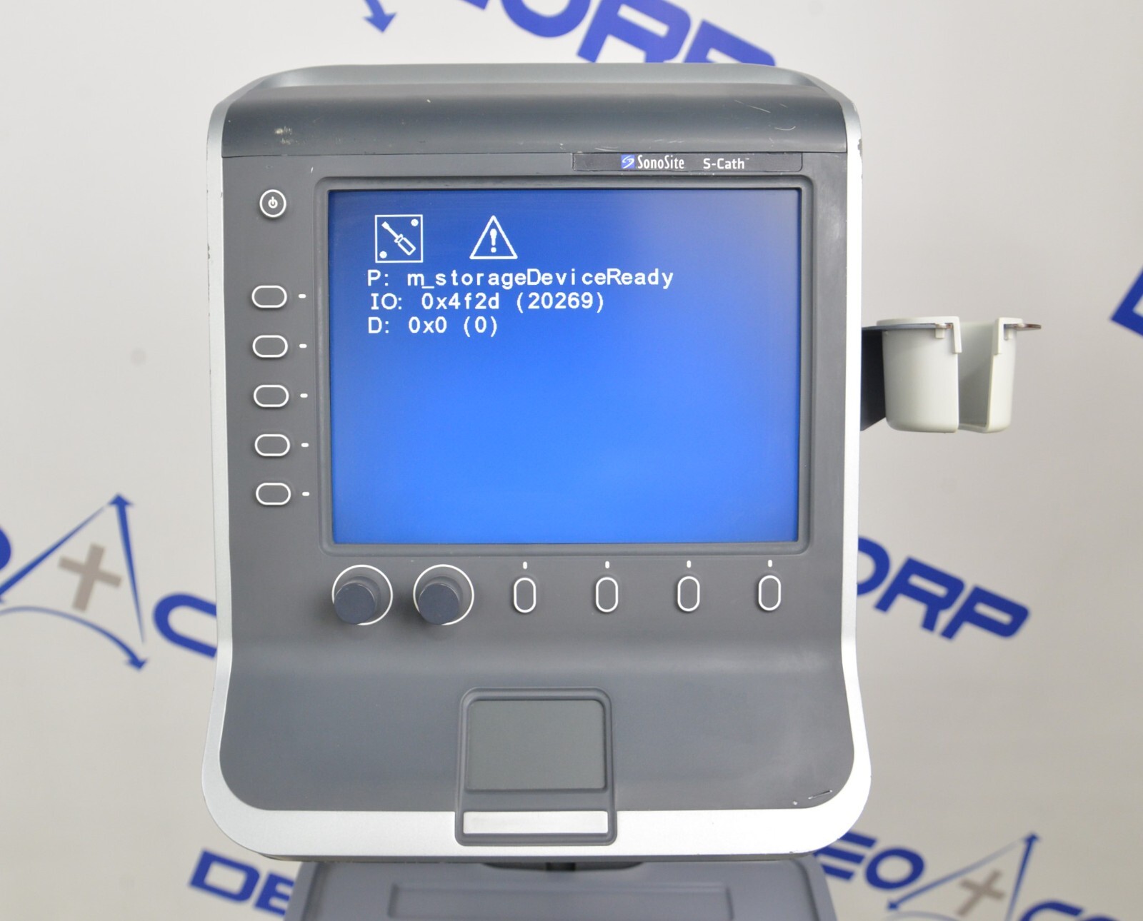 This SonoSite S-Cath Imaging System P08792/P09823 is in fair cosmetic condition. The unit powers on and displays a clear image. The unit has a faulty motherboard causing it to crash after being powered on for a few minutes, for this reason its being sold for parts. Connections are clean and in good condition. There are some scuff marks from previous use (see photos). Includes everything in the pictures and nothing else.