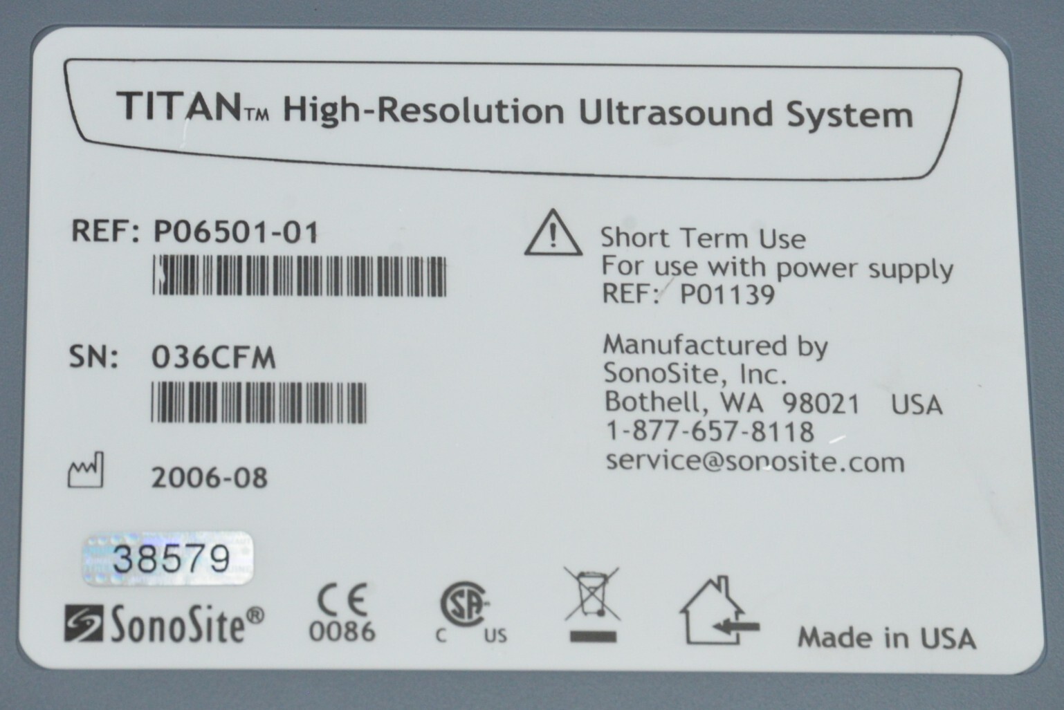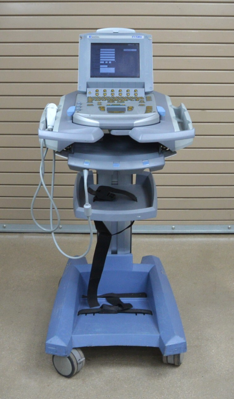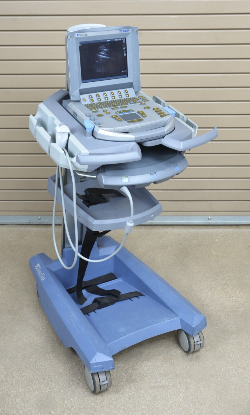 This SonoSite Titan High-Resolution Imaging System W/ C15/4-2 MHz & Cart is in good working condition. The unit powers on. The display screen produces a clear image and responds properly to selections. The battery holds a charge. The C15/4-2 MHz records clear images. There are some minor scuff marks and cracks in the plastic from previous use (see photos). This unit comes with a 30 day satisfaction guarantee. Includes everything in the pictures and nothing else.