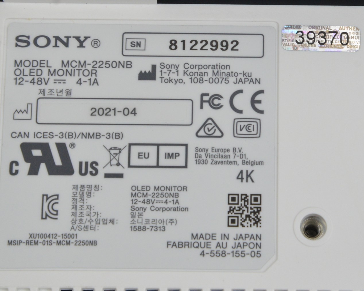 Sony MCM-2250NB GE Vivid E9 XD Clear OLED Display Screen 22″