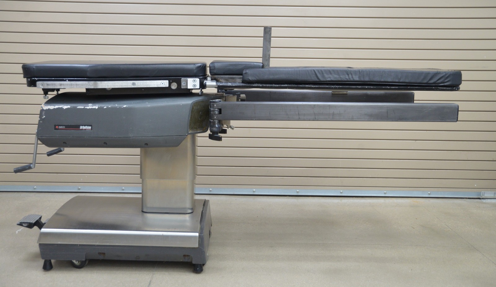 This Steris Amsco P-146655-648 OrthoVision Fracture Orthopedic Surgical Table is in great working condition. The tables manual adjustments movie smoothly through all range of motion. The breaks lock and unlock properly. There are scratches and scuff marks on the upholstery, and there are some scrapes and paint damage from previous use (see photos). This unit comes with a 30 day satisfaction guarantee. Includes everything in the pictures and nothing else.