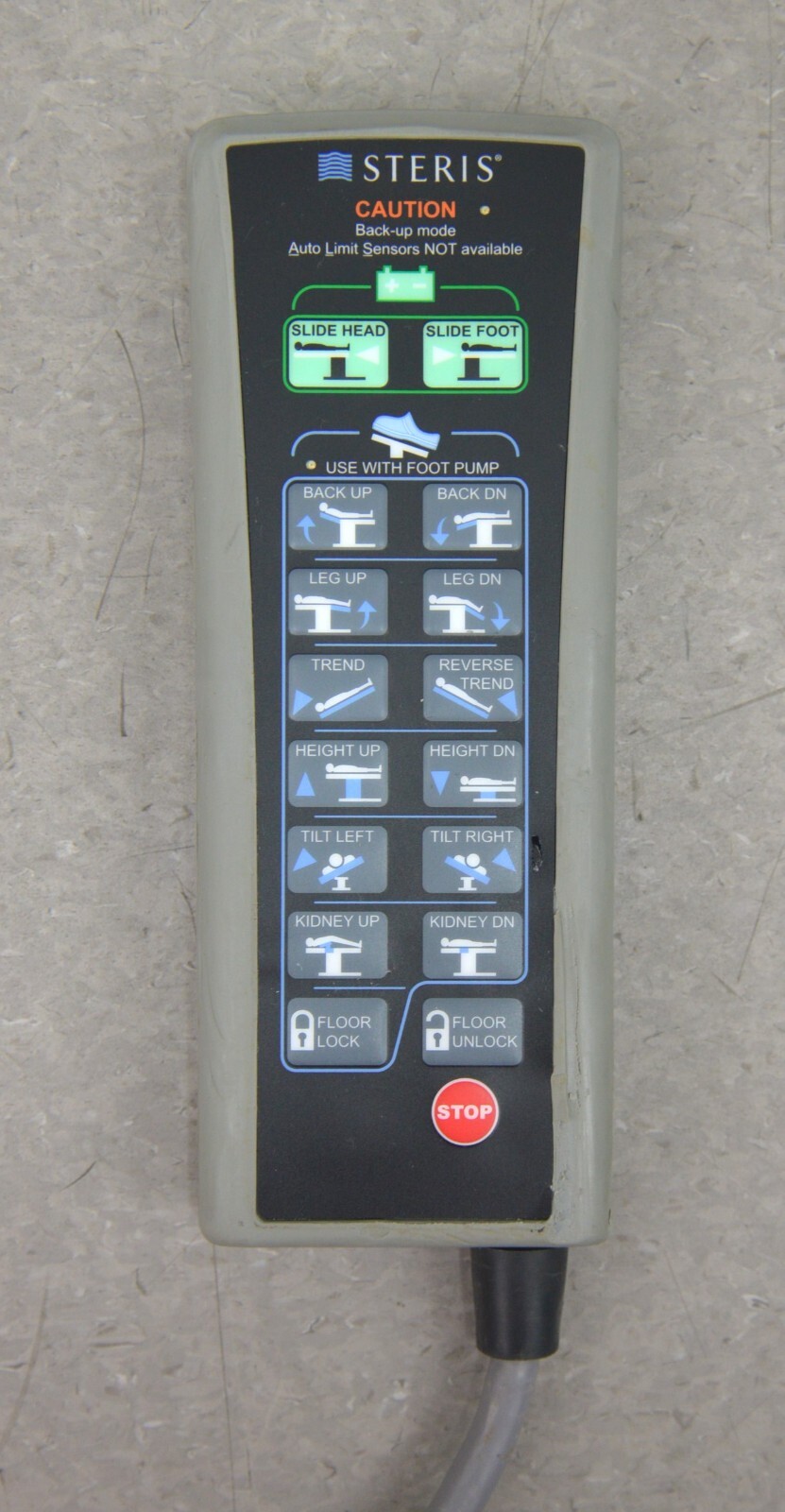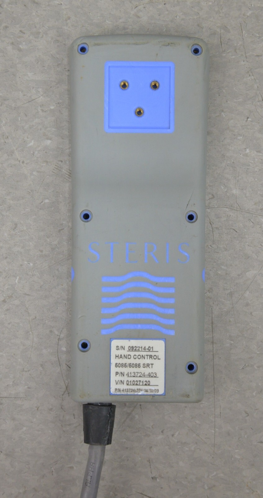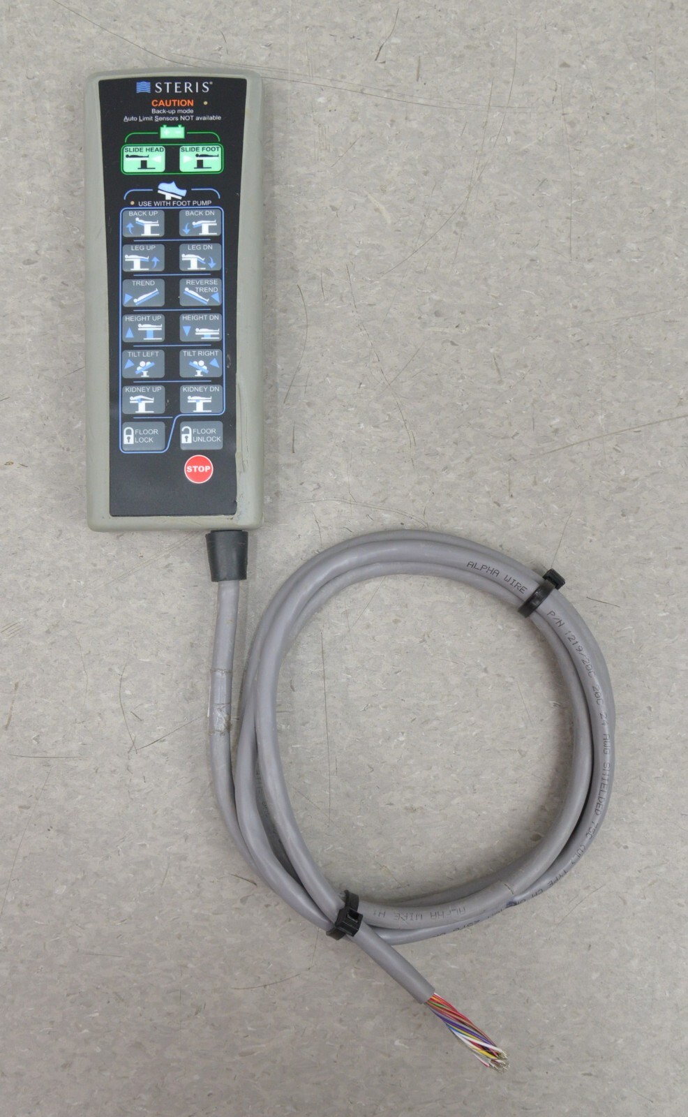 This STERIS Hand Control AUX 5085 4085 CMax 413724403 is in good working condition. The cord will need to be rewired. The wires are in good condition. There are minor scuff marks from previous use (see photos). This unit comes with a 30 day satisfaction guarantee. Includes everything in the pictures and nothing else.