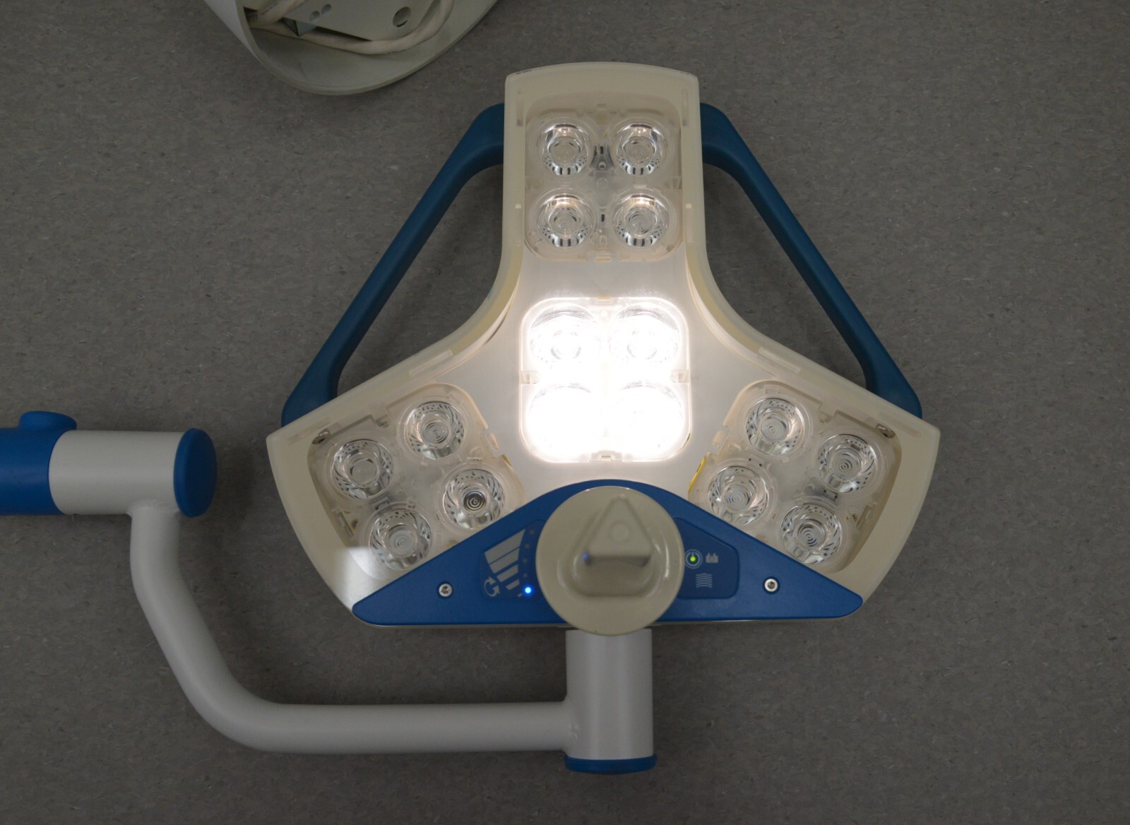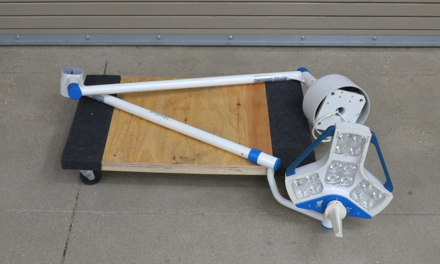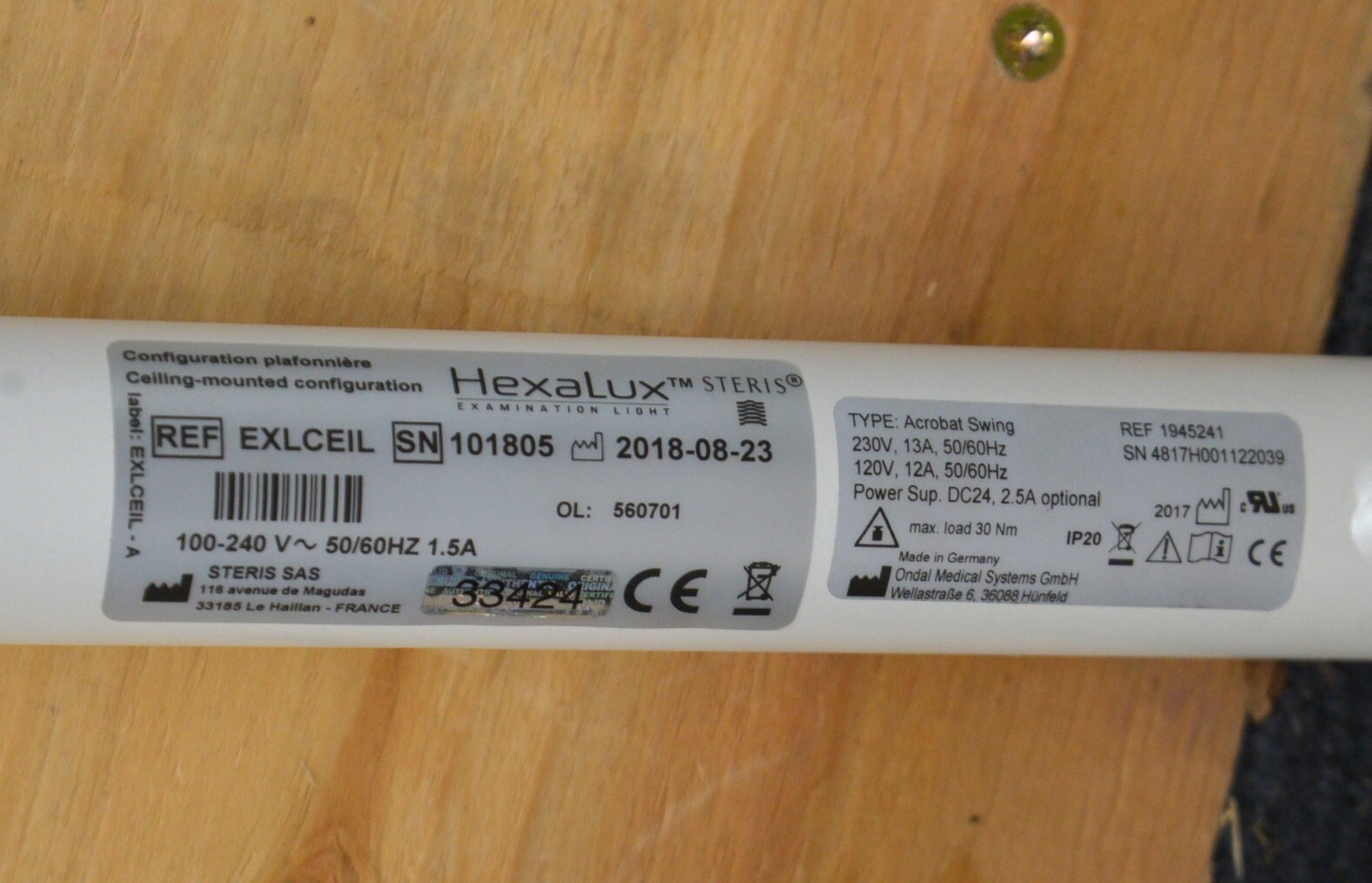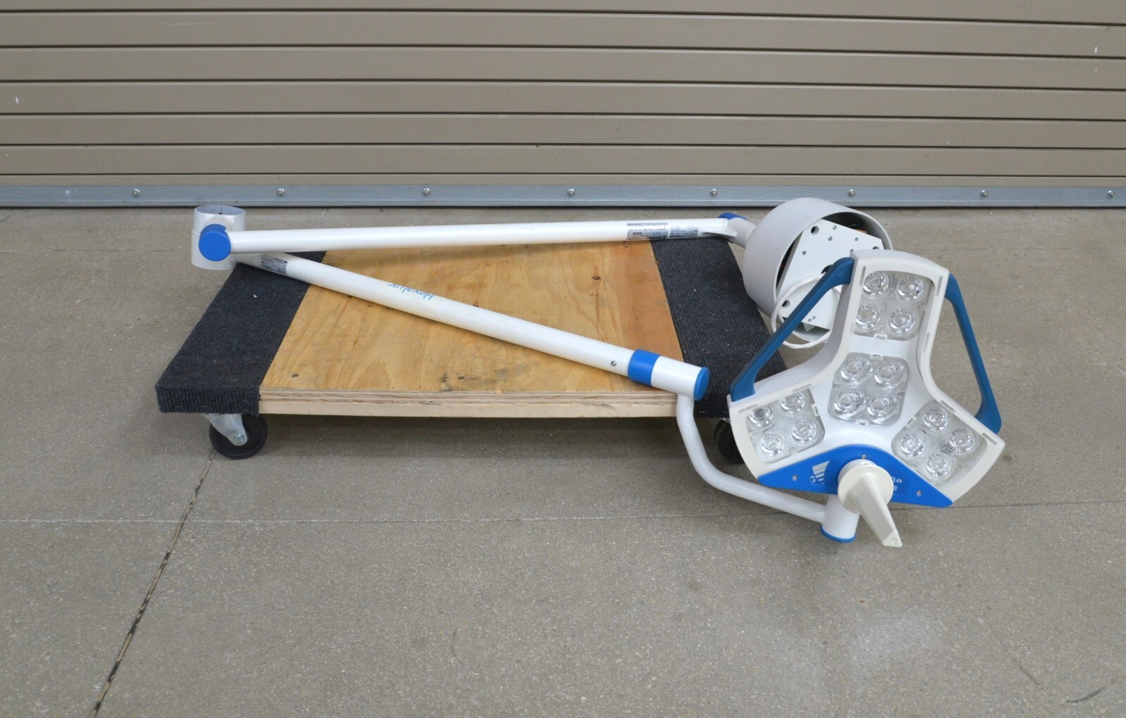 This Steris Hexalux EXLCEIL Ceiling Mounted Configuration s in good working condition. This unit powers on properly. The hinge moves smoothly through its range of motion. The light powers on and adjusts brightness properly. The cosmetic condition is good. We used a universal power cord to test this unit that is not included. This system comes with a 30 day money back guarantee. Includes everything in the pictures and nothing else.