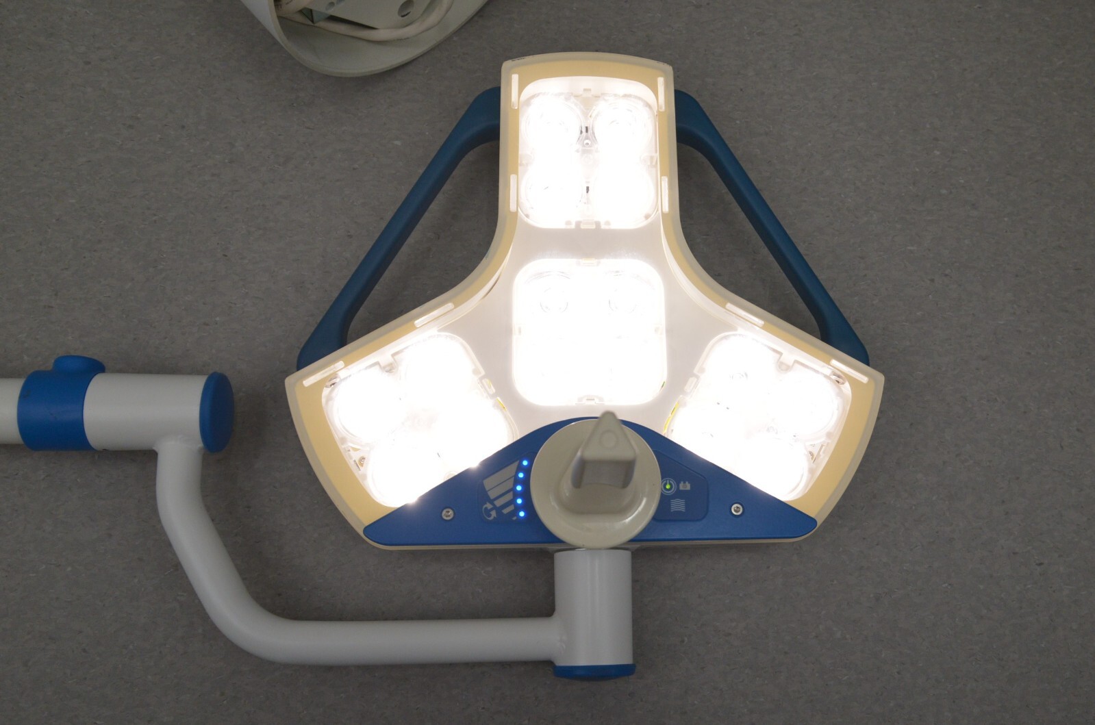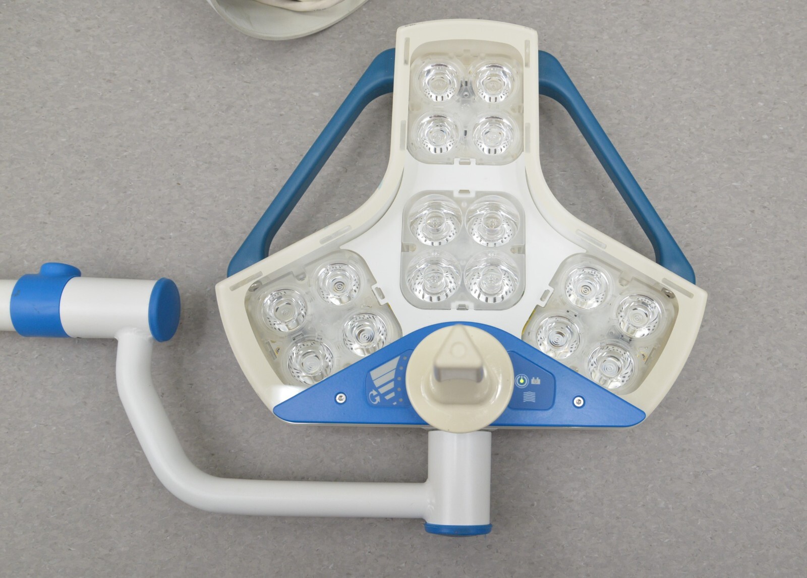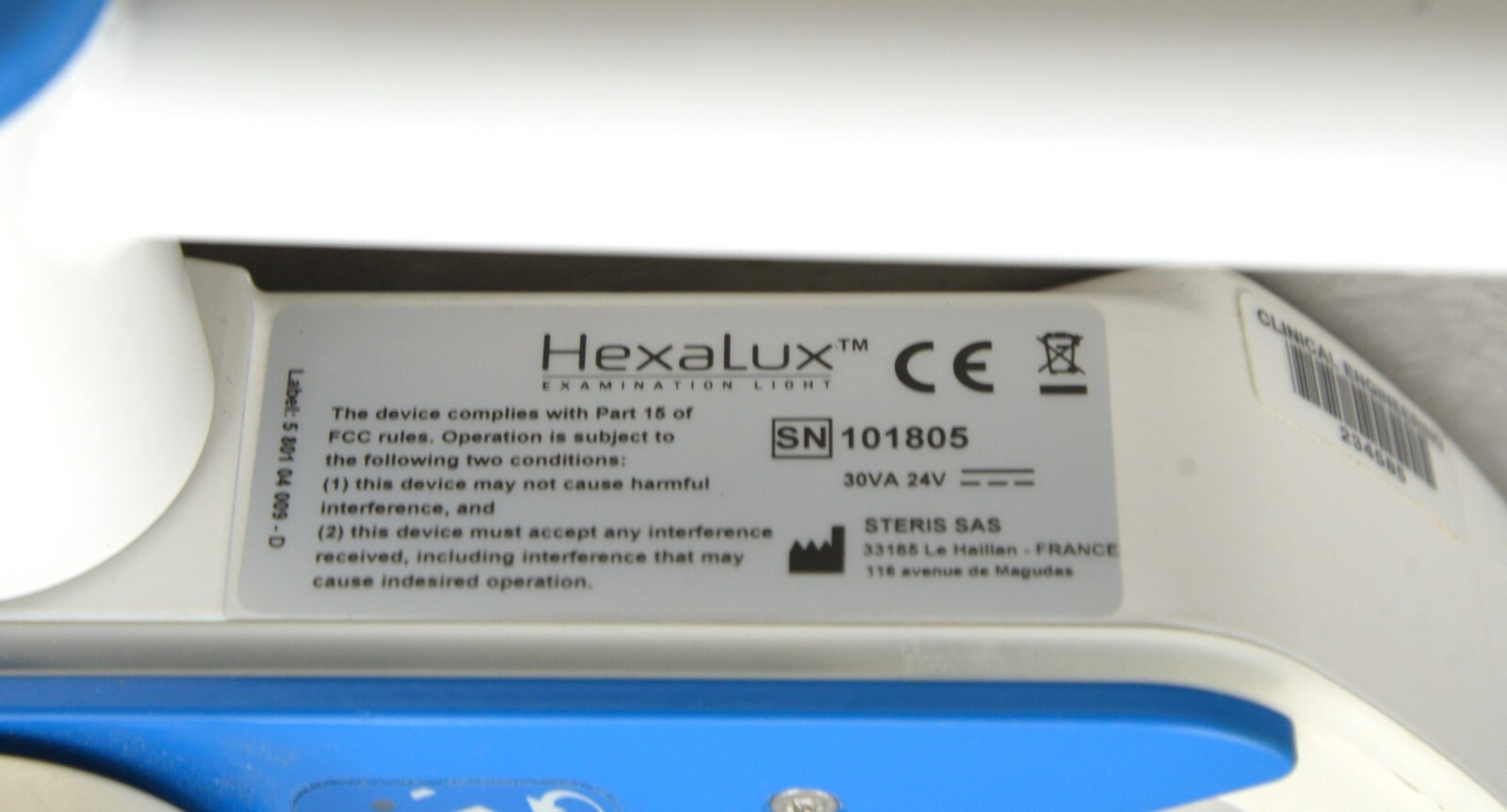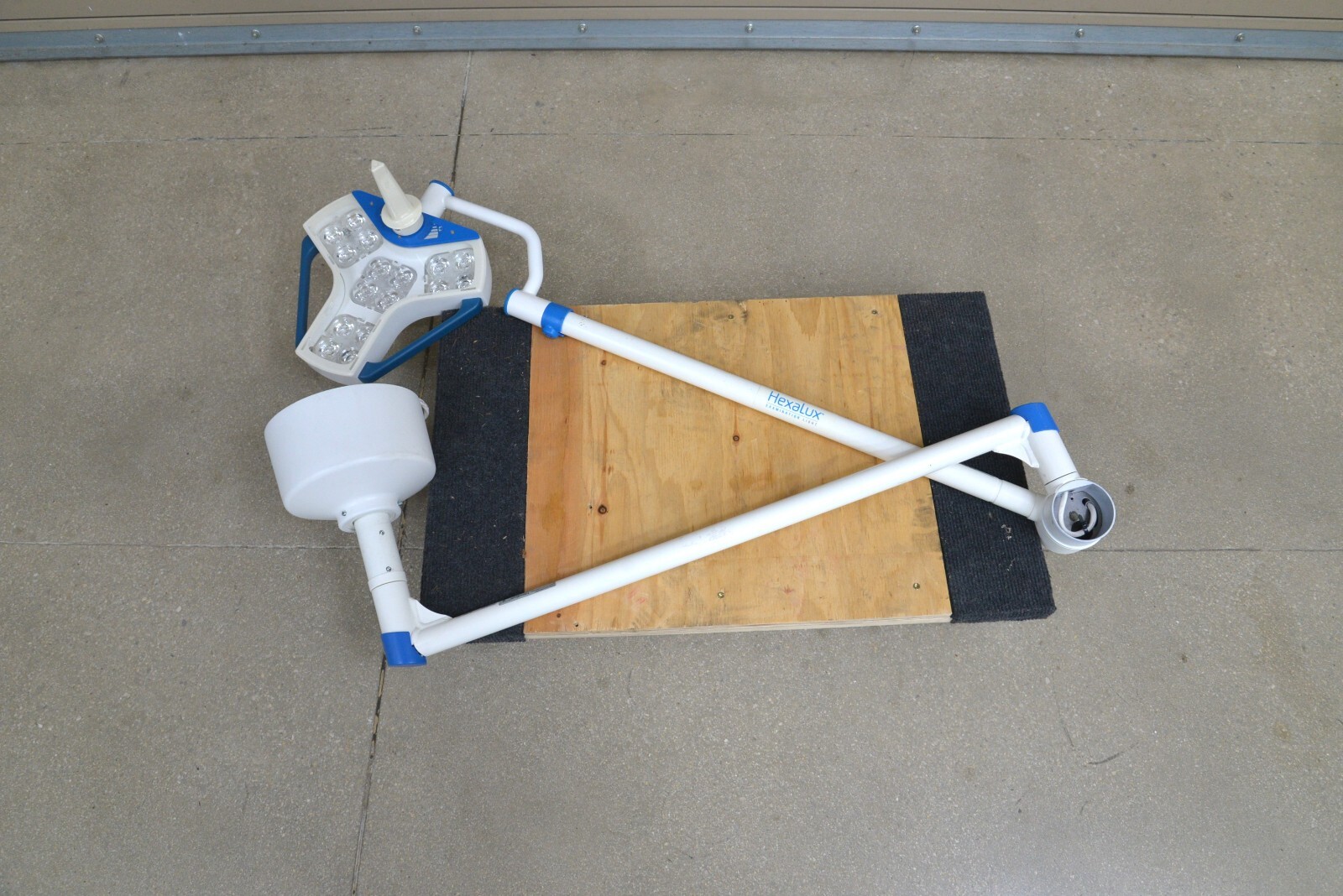 This Steris Hexalux EXLCEIL Ceiling Mounted Configuration s in good working condition. This unit powers on properly. The hinge moves smoothly through its range of motion. The light powers on and adjusts brightness properly. The cosmetic condition is good. We used a universal power cord to test this unit that is not included. This system comes with a 30 day money back guarantee. Includes everything in the pictures and nothing else.
