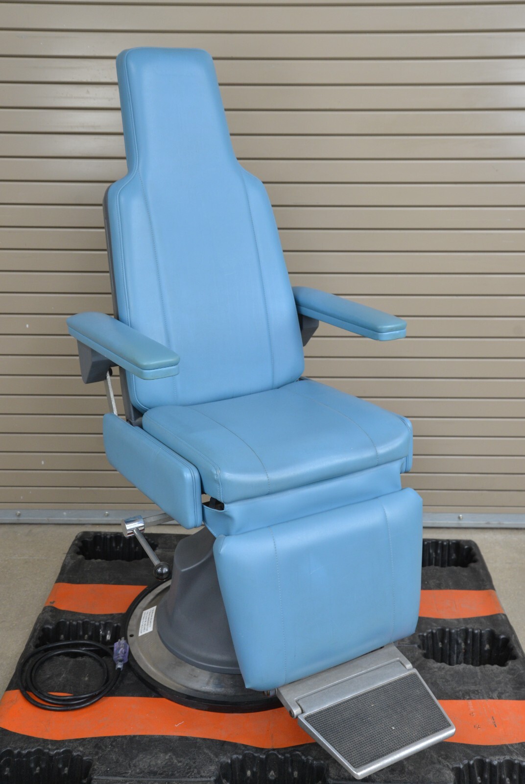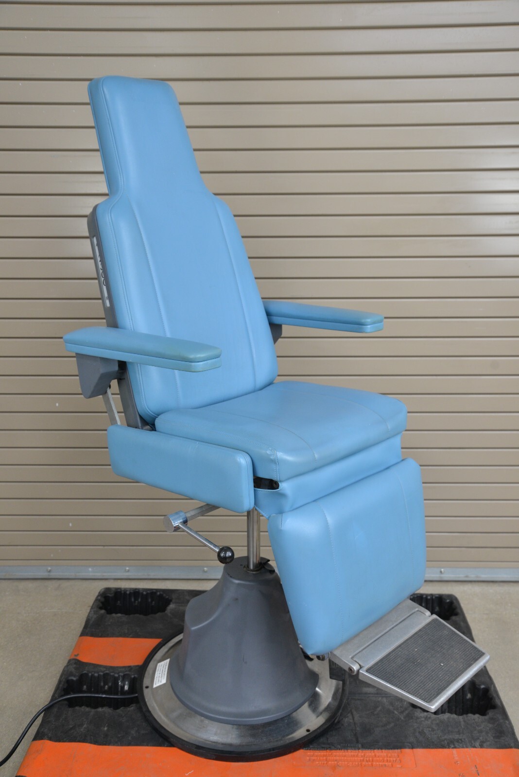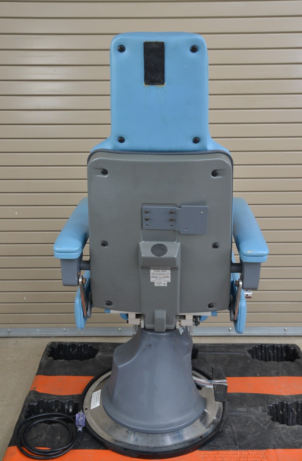 This examination chair is in very good working condition. The chair adjusts properly and the upholstery is in good condition with the exception of some minor discoloration on the arms (see photo). The plastic on the base of the chair is damaged but that does not effect its functionality (see photo). This chair comes with a 30 day money back guarantee! Includes everything in the pictures and nothing else.