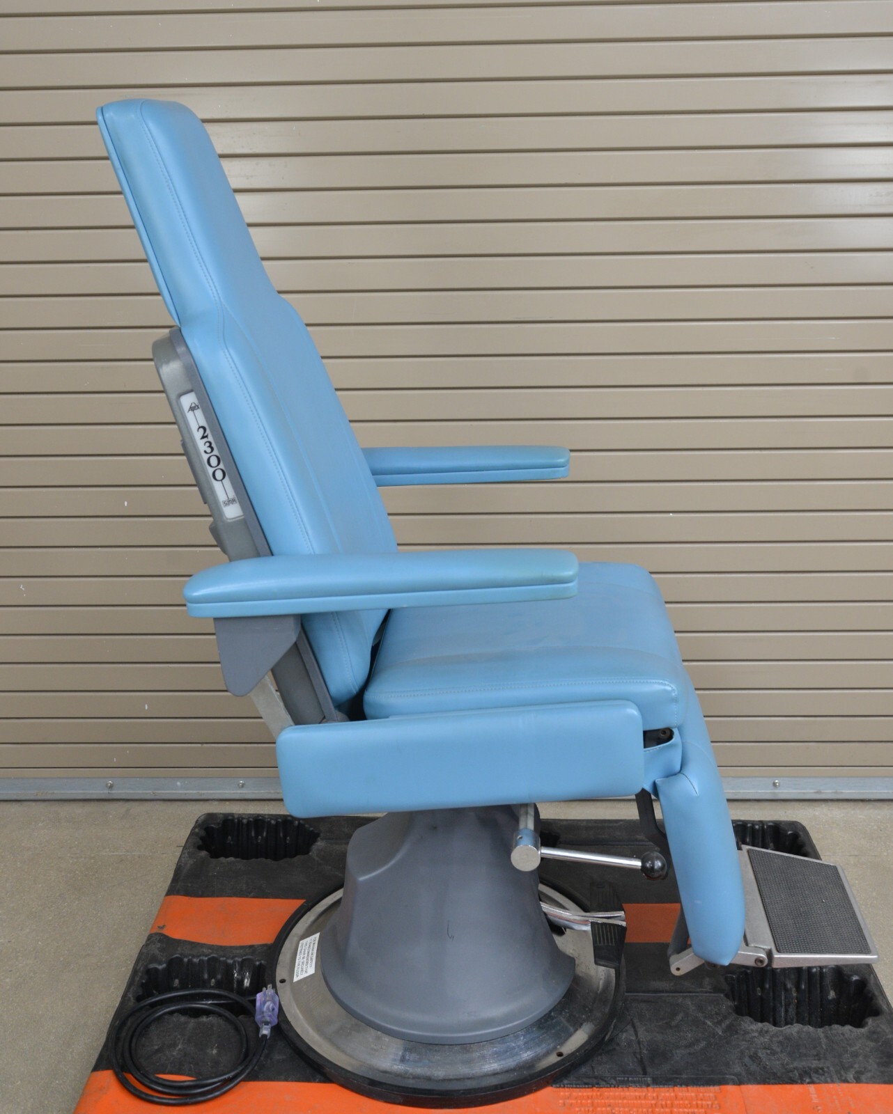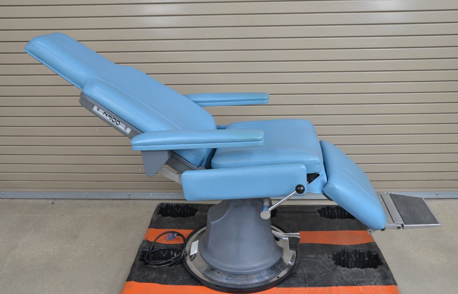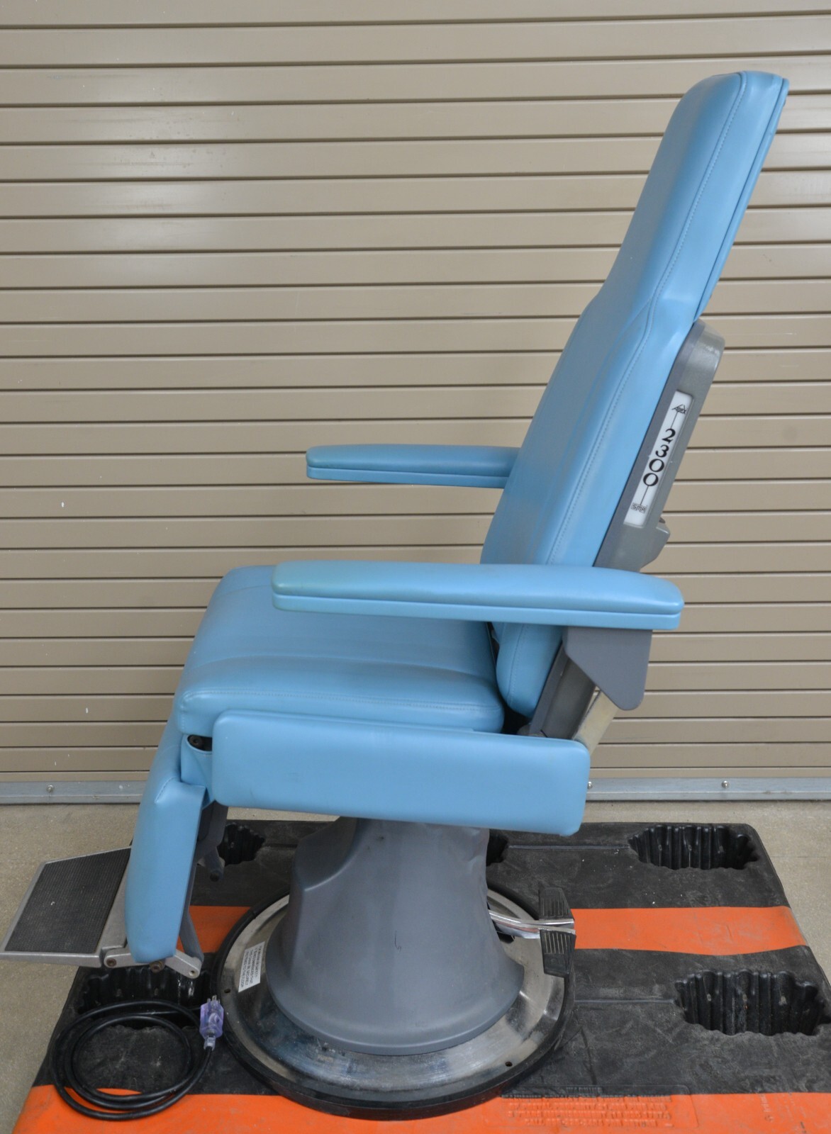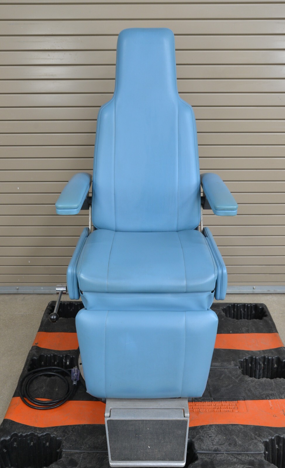 This examination chair is in very good working condition. The chair adjusts properly and the upholstery is in good condition with the exception of some minor discoloration on the arms (see photo). The plastic on the base of the chair is damaged but that does not effect its functionality (see photo). This chair comes with a 30 day money back guarantee! Includes everything in the pictures and nothing else.