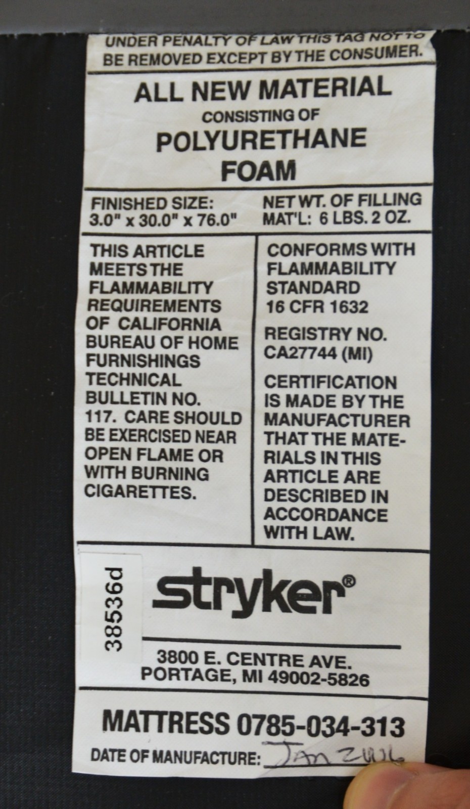 Stryker Stretcher Mattress 73″ x 30″ x 3″