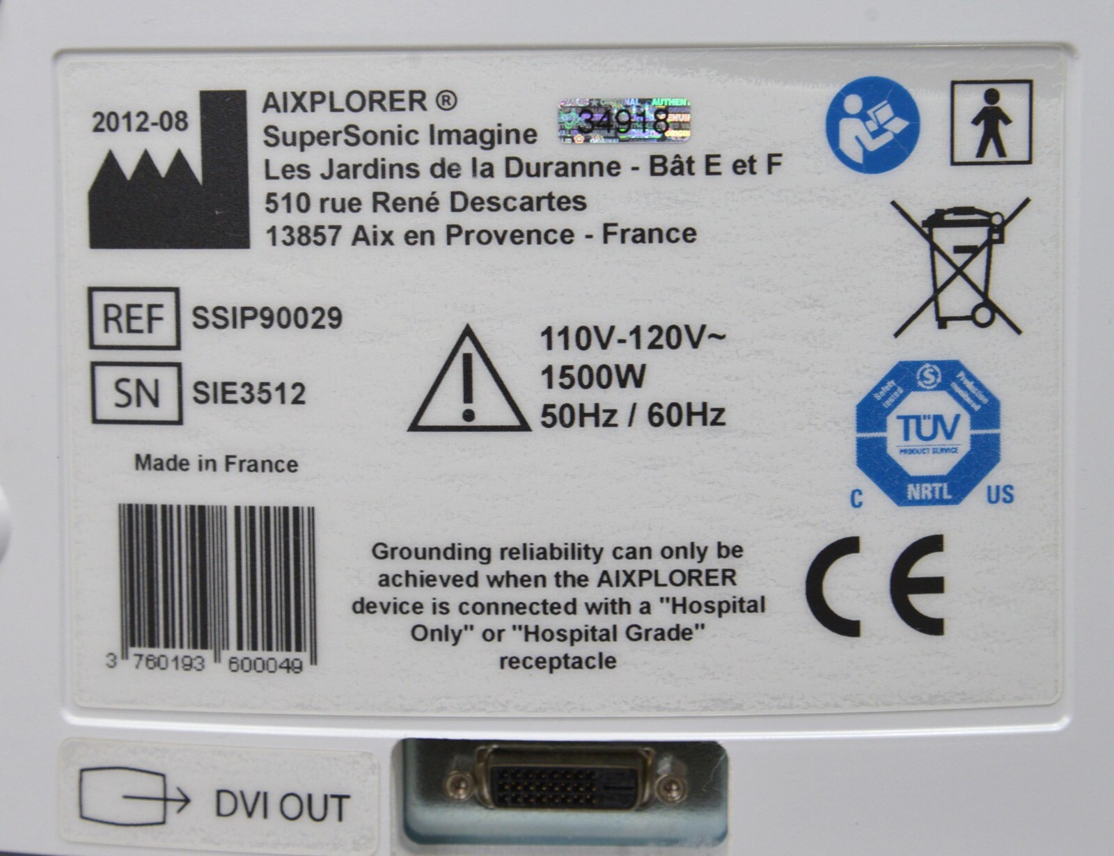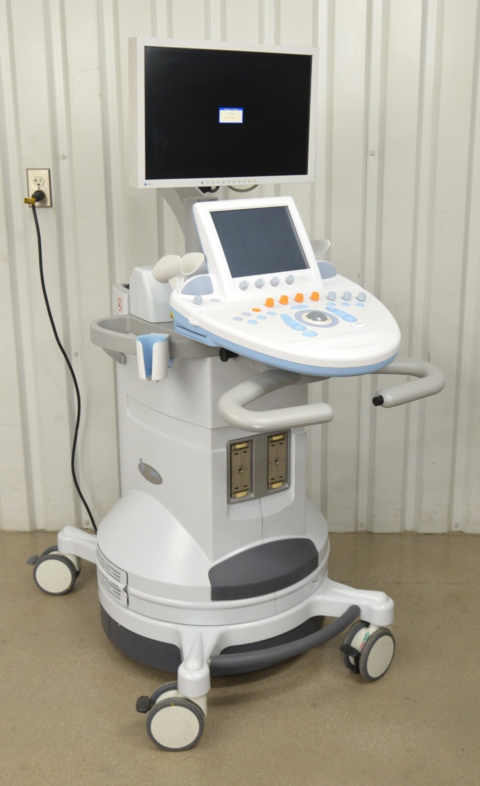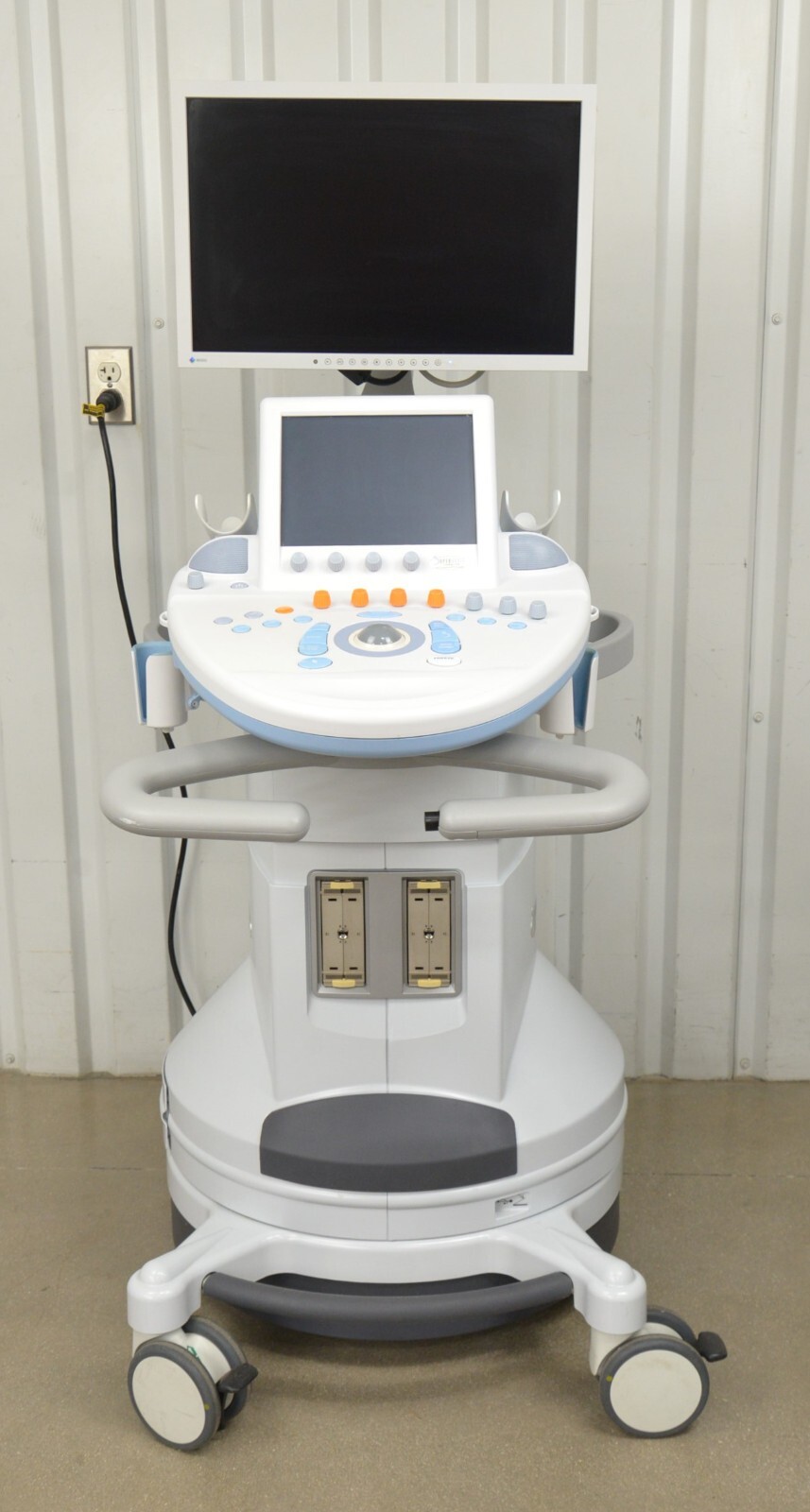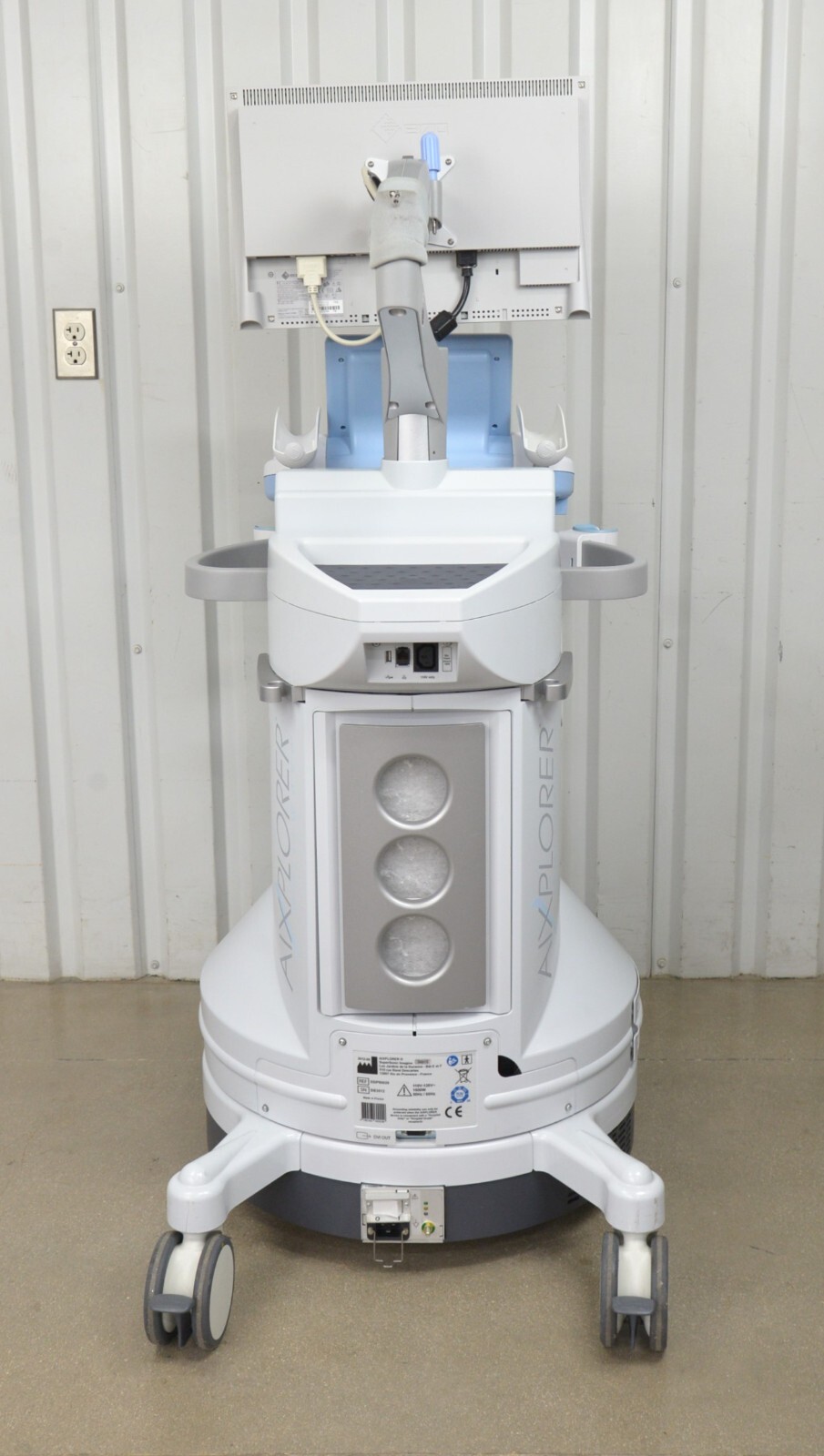 This SuperSonic Imagine Aixplorer Multiwave Innovative Imaging System is in good cosmetic condition. All connection points are clean and in good condition. This unit does not have a hard drive and does not power on, for these reasons this unit is being sold for parts. The lower flashes on quickly the turns right off. The overall cosmetic condition of this system is good with the exception of a couple minor scuff marks (see photo). Includes everything in the pictures and nothing else.