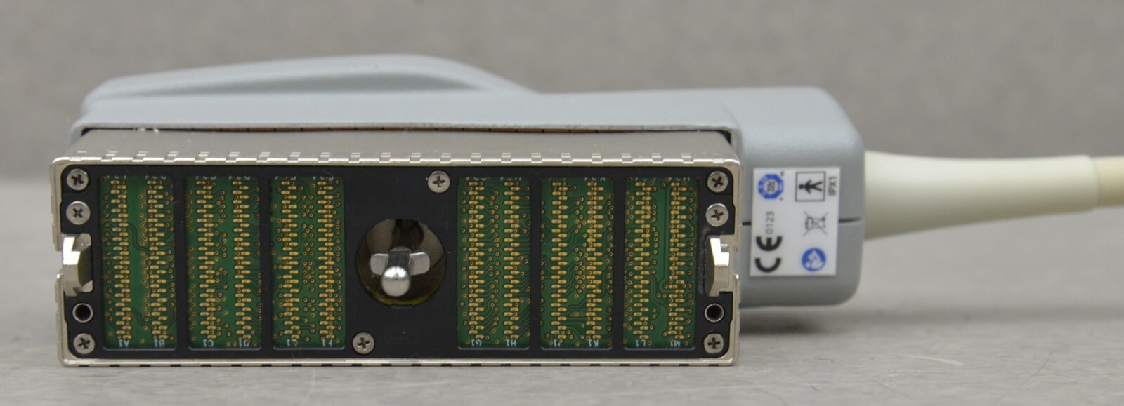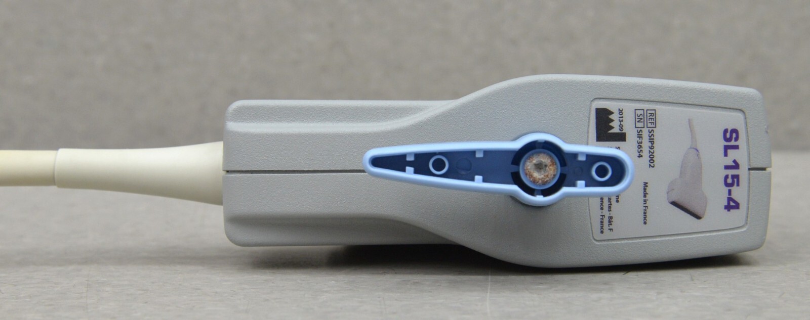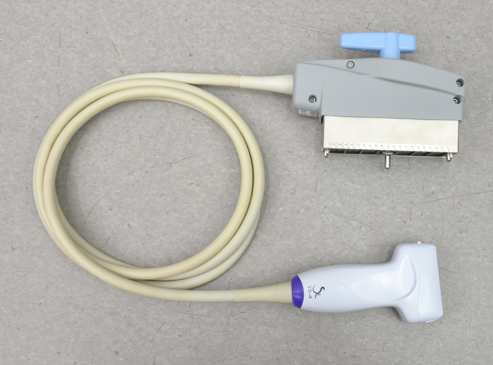This SuperSonic Imagine SL15-4 Linear Array came from a working environment is in good condition. The connection is clean and in good condition. There are minor scuff marks and discoloration from previous use (see photos). This unit comes with a 30 day satisfaction guarantee. Includes everything in the pictures and nothing else.