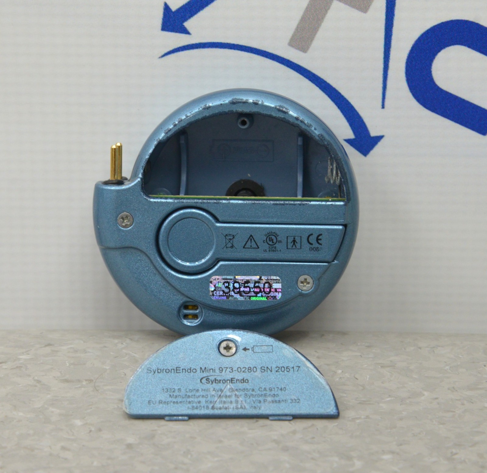 This SybronEndo Mini Apex Locator 973-0280 is in good working condition. This unit powers on properly. The connection points are clean and in good condition. There are some minor scuff marks and discoloration from previous use (see photos)This unit is powered by a AA battery, the battery is not included. This unit comes with a 30 day satisfaction guarantee. Includes everything in the pictures and nothing else.