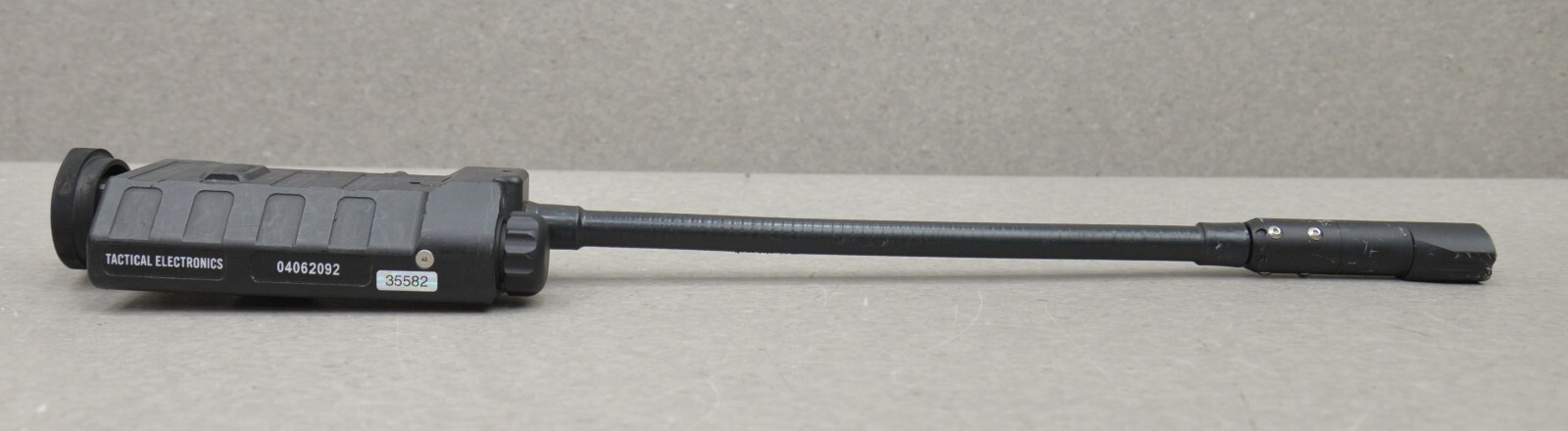 This Tactical Electronics Wireless Video Core Flex Camera System W/ IR Light is in good working condition. This unit powers on properly. The lens has a clear view. This unit has a 10″ flex camera neck and a 1″ eyepiece that displays an HD video. The IR illumination is controlled and adjusted directly from the unit. The overall cosmetic condition is good with the exception of a few scuff marks from previous use (see photos). This unit requires three CR123 batteries. Batteries not included. This item comes with a 30 day satisfaction guarantee. Includes everything in the pictures and nothing else.