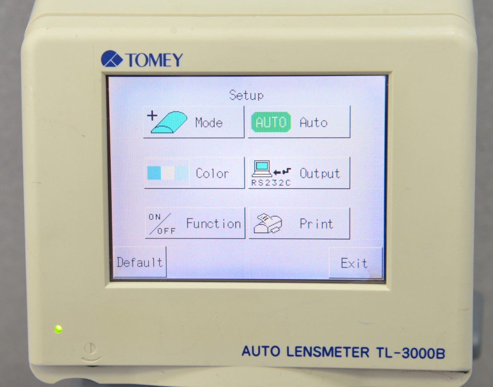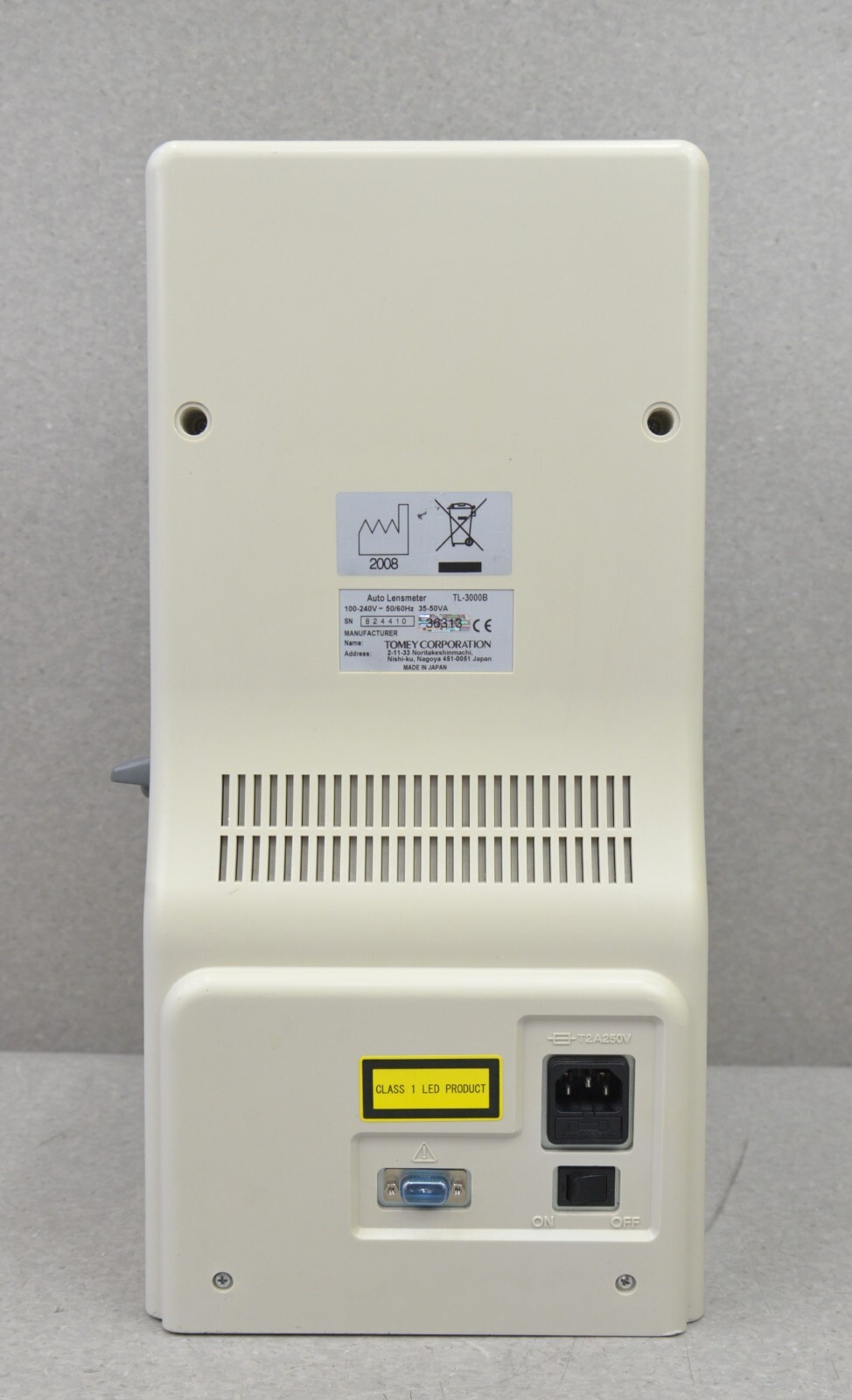 This Tomey TL-3000B Automated Lensometer is in good working condition. This unit powers on properly. The display screen has a clear picture and respond properly to touch screen. The unit measures lenses properly. The connection points are clean and in good condition. There are minor scuff marks and discoloration from previous use (see photos). This unit comes with a 30 day satisfaction guarantee. Includes everything in the pictures and nothing else.