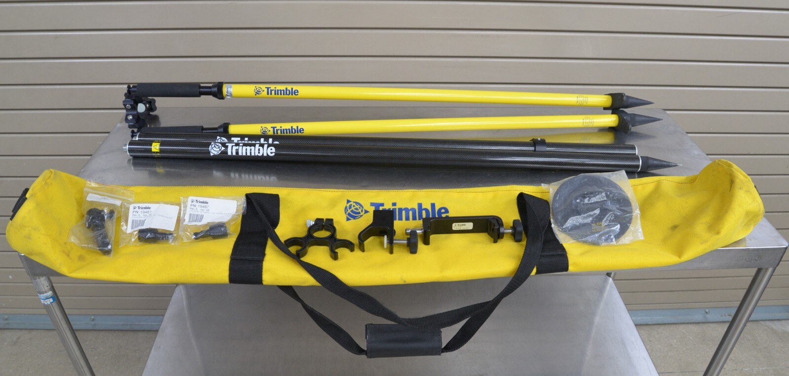 The Trimble 2m Carbon Fiber Pole with Quick Release Adapter and Bipod is in great condition. All knobs and height adjustments are in great condition and function properly. This unit includes a variety of accessories that are in great condition (see photos).