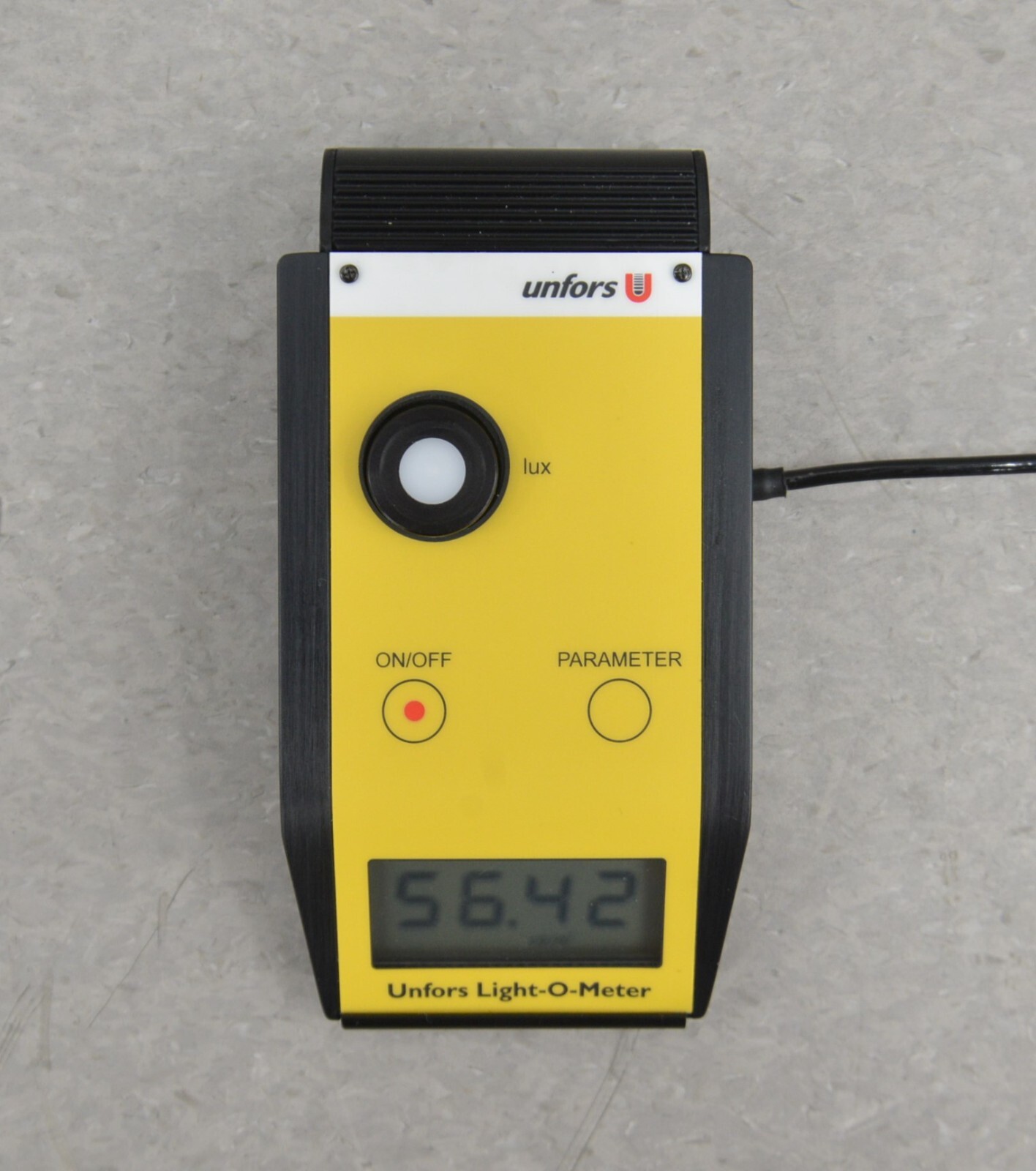 This Unfors RaySafe Light-O-Meter P11 2005 powers on and is in great working condition. The buttons respond to selection. This unit requires a 9V battery, however, the battery is not included. This unit comes with a 30 day satisfaction guarantee. Includes everything in the pictures and nothing else.