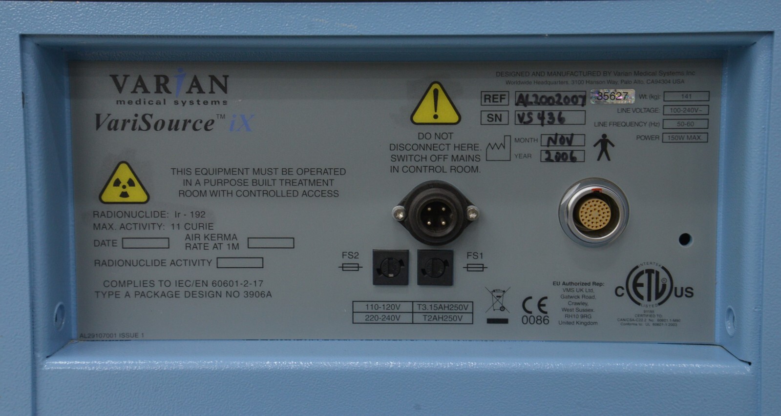 Varian VariSource iX High Dose Rate Afterloader Brachytherapy Treatment System
