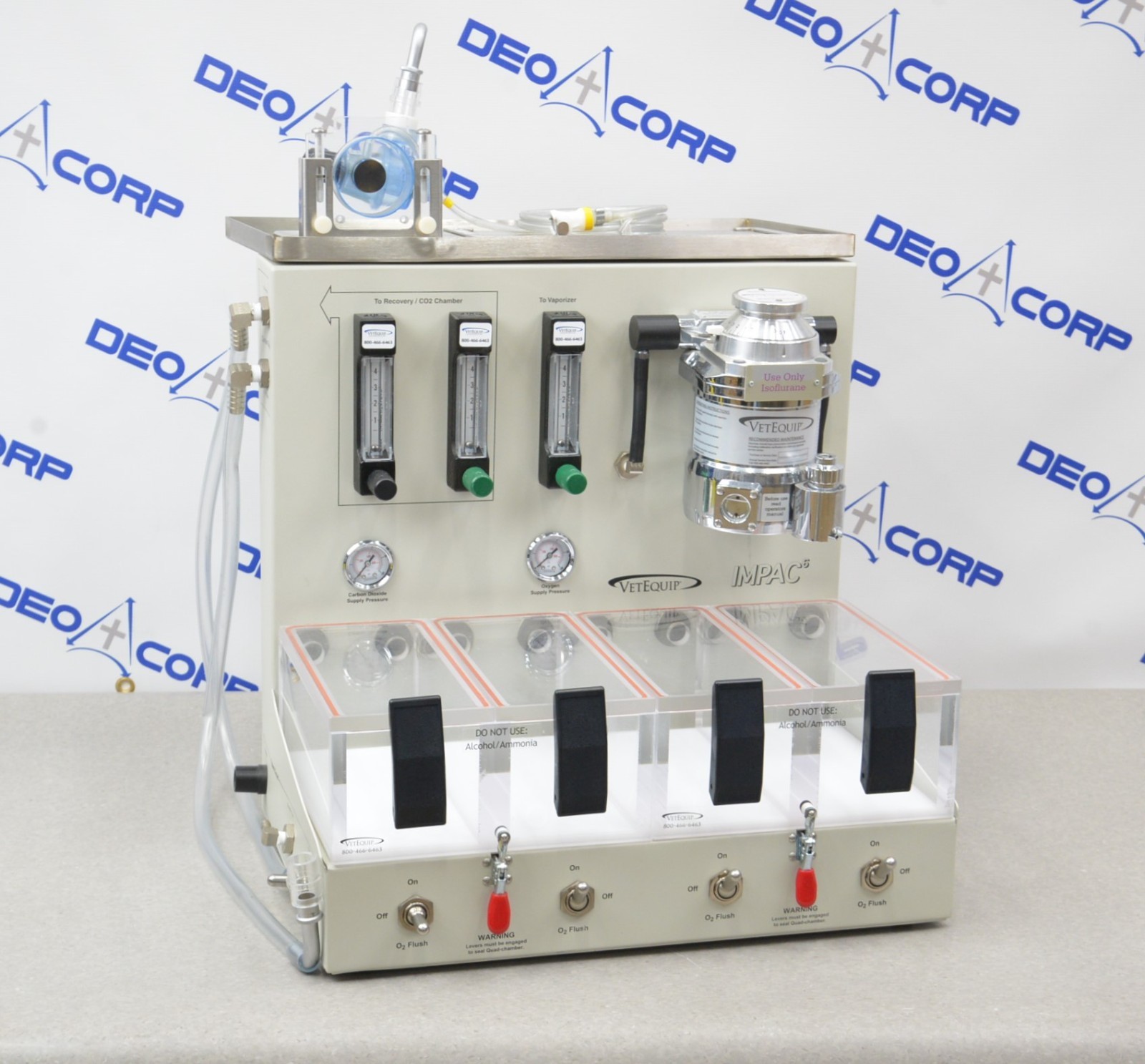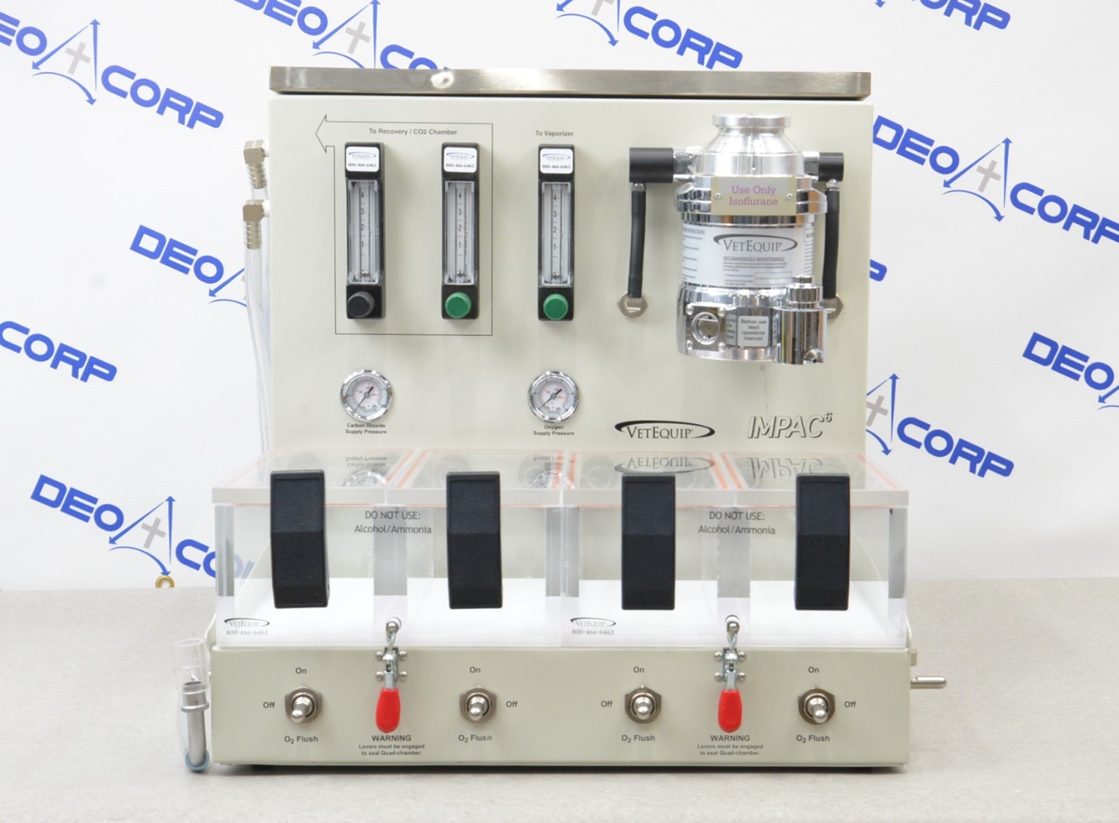 This VetEquip IMPAC 6 Quad-Chamber Inhalation System is in good cosmetic condition and came from a working environment. The connection ports are clean and in good condition. There are some scuff marks from previous use (see photos). This unit comes with a 30 satisfaction guarantee. Includes everything in the pictures and nothing else.