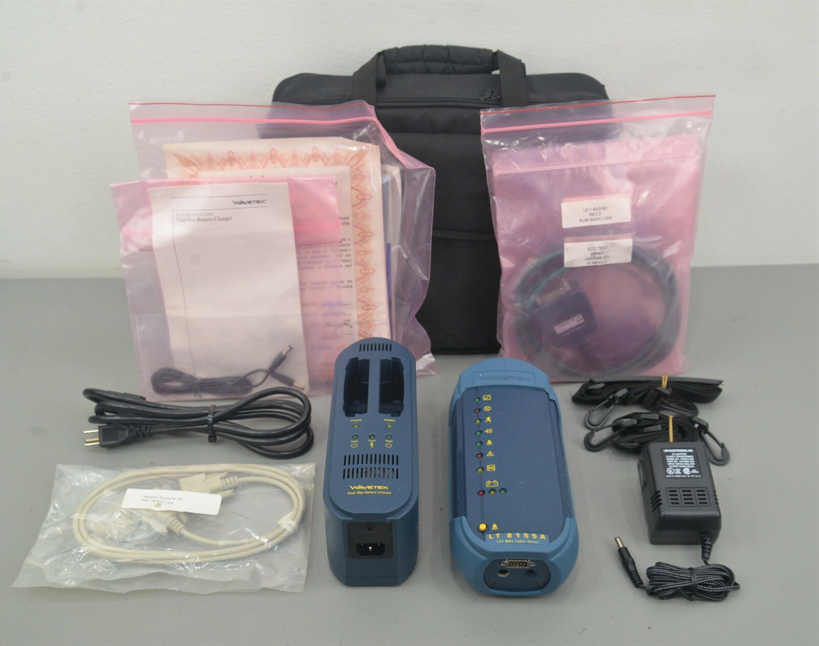 Wavetek LT8155A 155 MHz Cable Tester & Dual Bay Battery Charger w/ Case & Accs