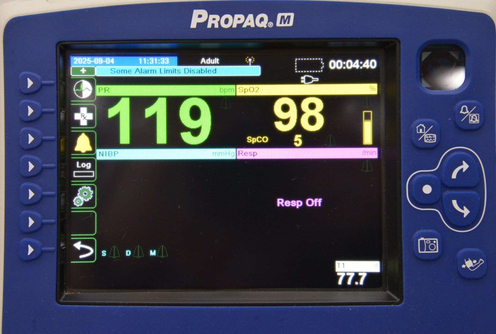 This Zoll ProPaq M Portable Vital Signs Monitor W/ Full Options is in great working condition. The unit powers on properly. The screen produces a clear image and responds to selection. All connection points are clean and in good condition. The unit was tested with a power supply that is not included. There are a few minor scuff marks from previous use (see photos). Battery not included. This unit comes with a 30 day satisfaction guarantee. Includes everything in the pictures and nothing else.